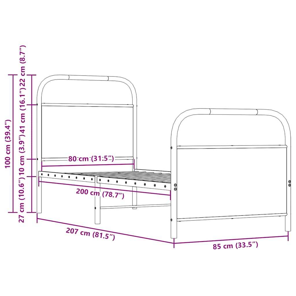 vidaXL ágykeret matrac nélkül 80x200 cm füstölt tölgy fűrészelt fa