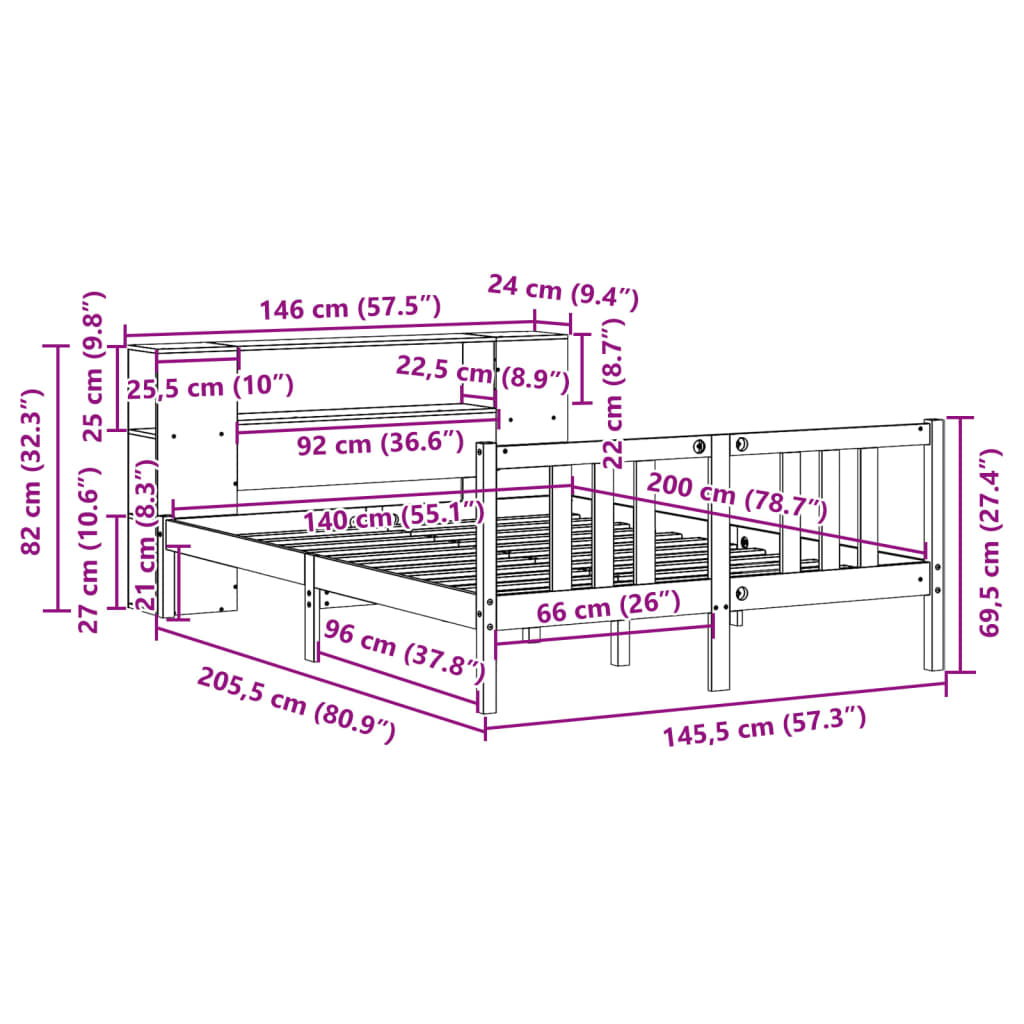 vidaXL fehér tömör fenyőfa könyvespolcos ágy matrac nélkül 140x200 cm