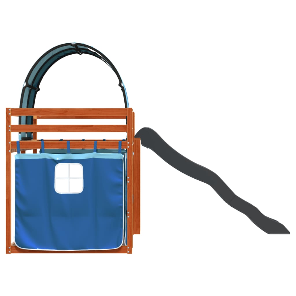 vidaXL kék emeletes ágy csúszdával és függönnyel 90 x 200 cm