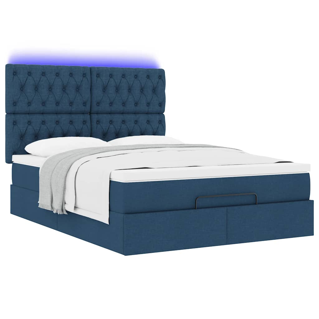 vidaXL Ottomán ágykeret matraccal Kék 140x190cm anyaggal