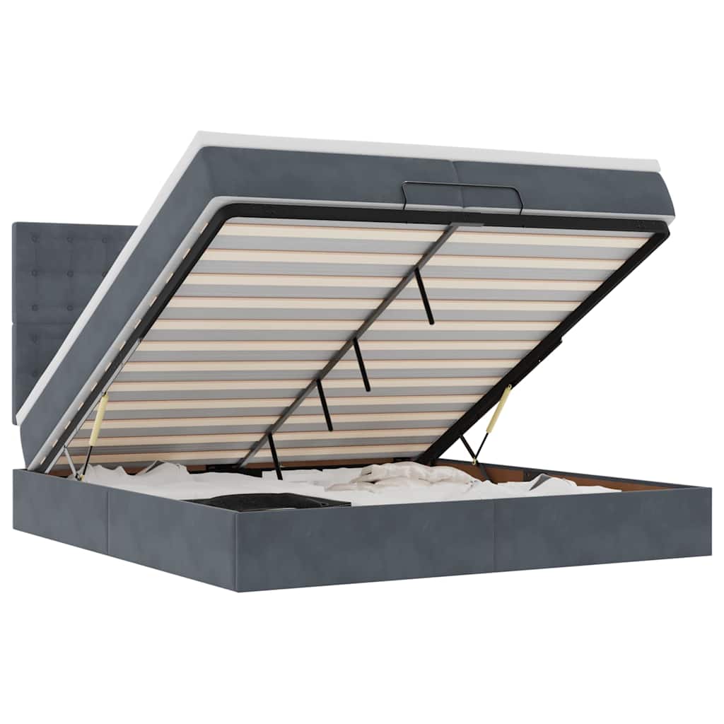 vidaXL Ottomán ágykeret matraccal Sötét szürke 200x200cm bársony