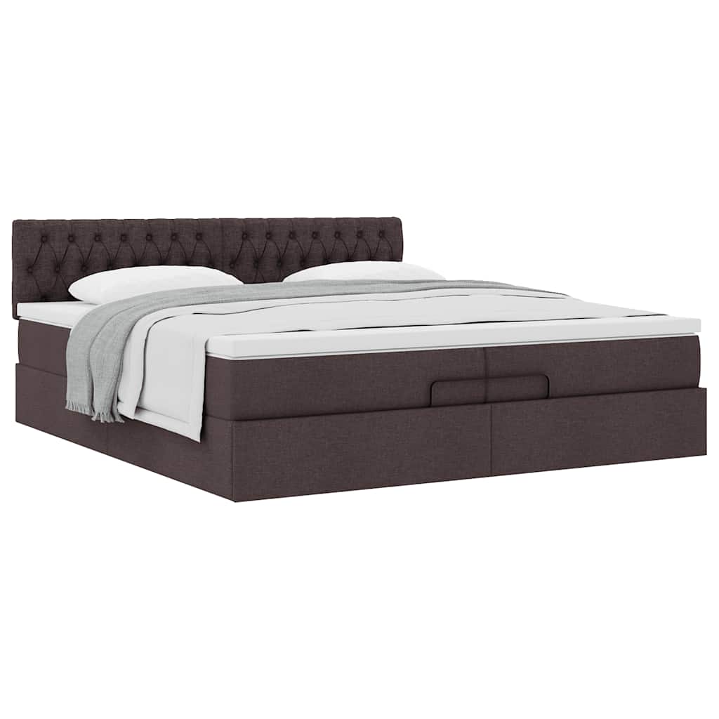 vidaXL Ottomán ágykeret matraccal sötétbarna 200x200 cm szövet