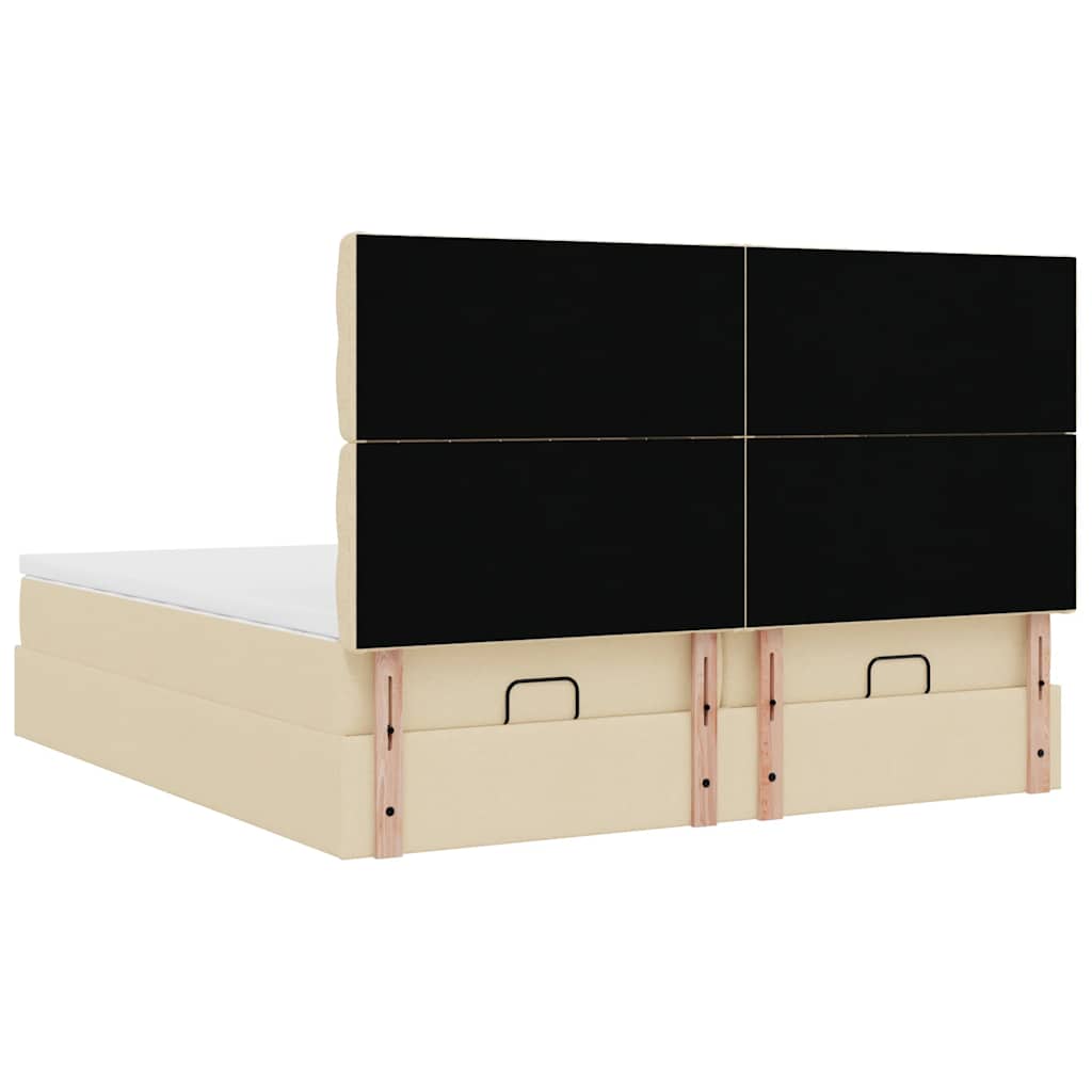 vidaXL Ottomán ágykeret matracokkal Krém 160x200cm szövet