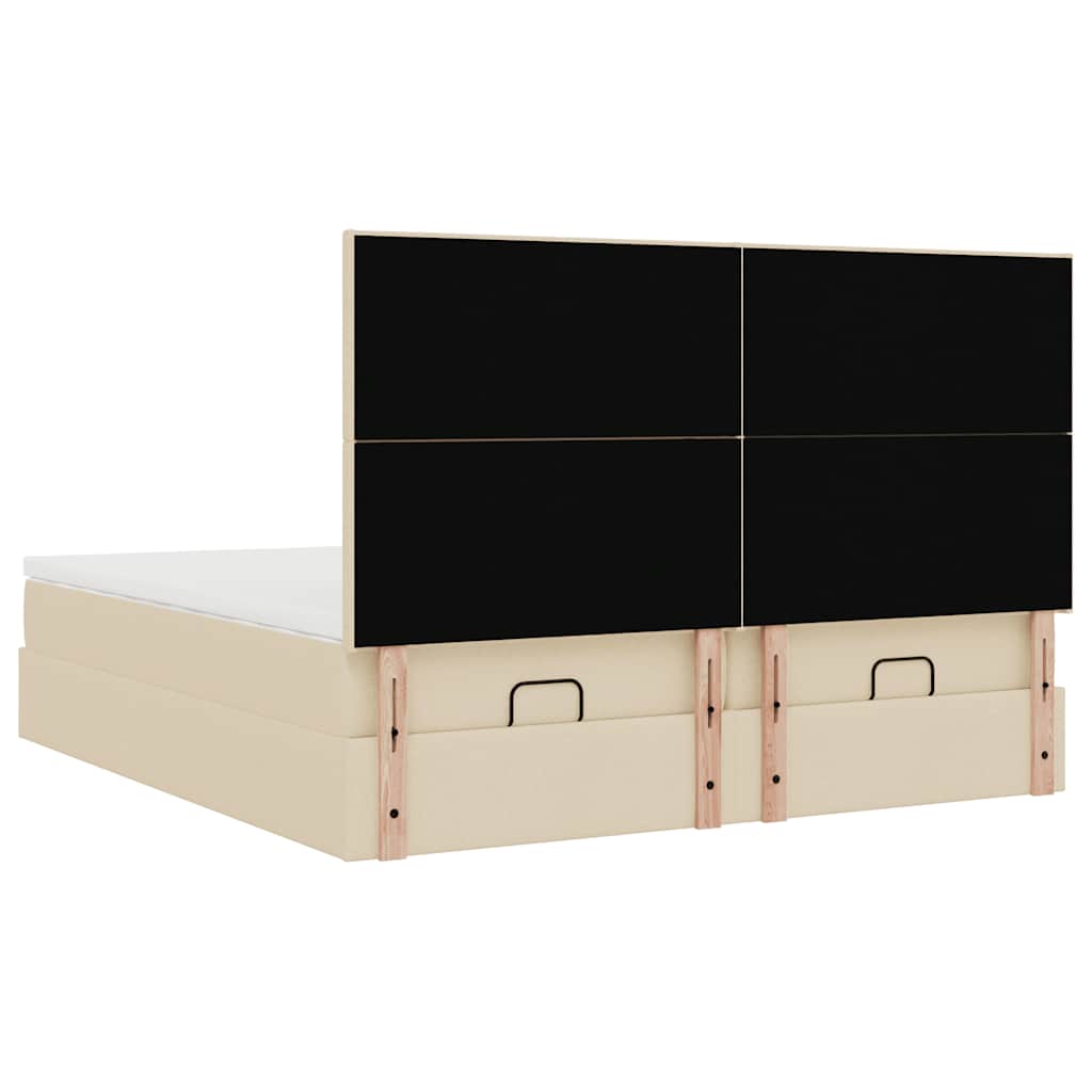 vidaXL Ottomán ágykeret matracokkal Krém 160x200cm szövet