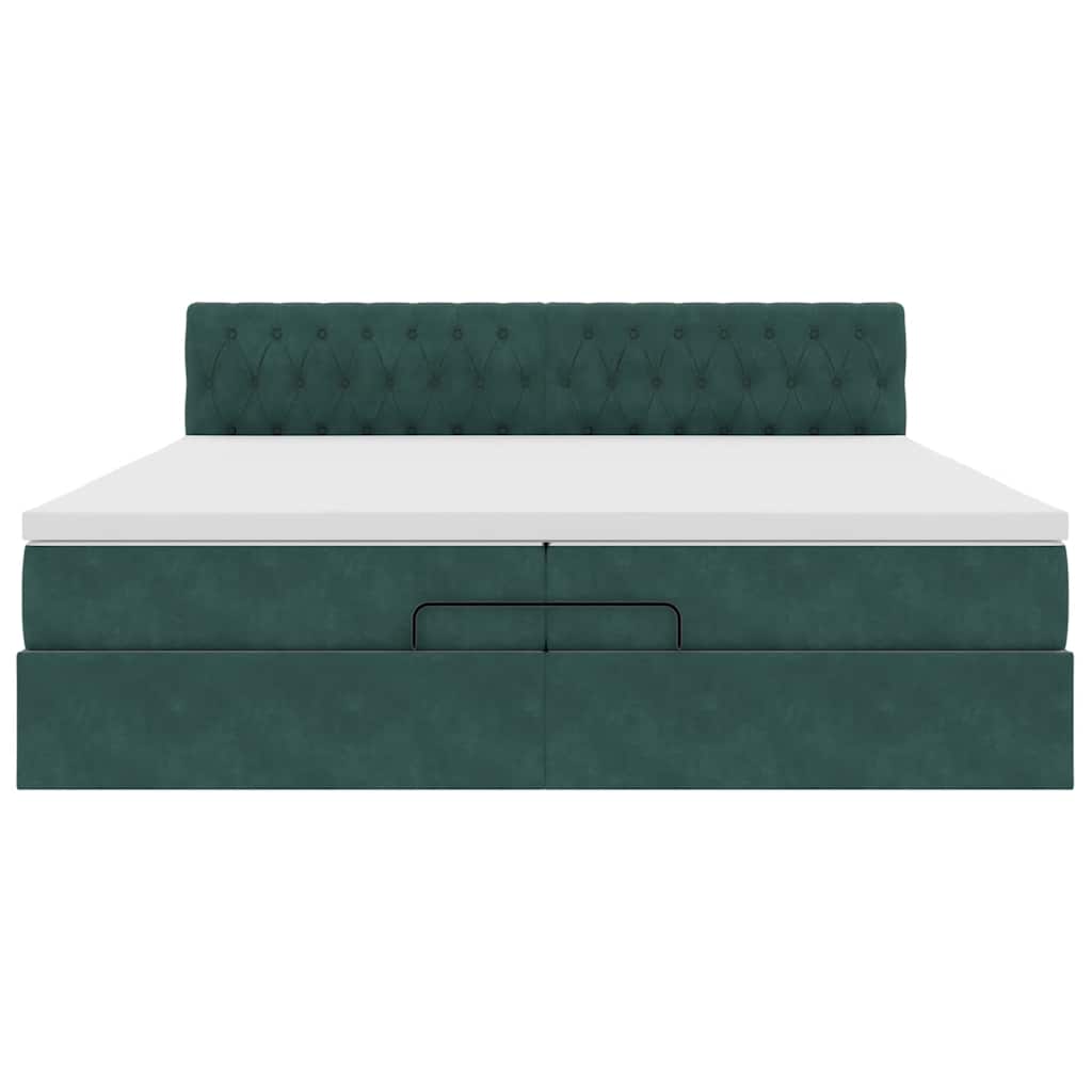 vidaXL Ottomán ágykeret matracokkal Sötétzöld 200x200cm bársony