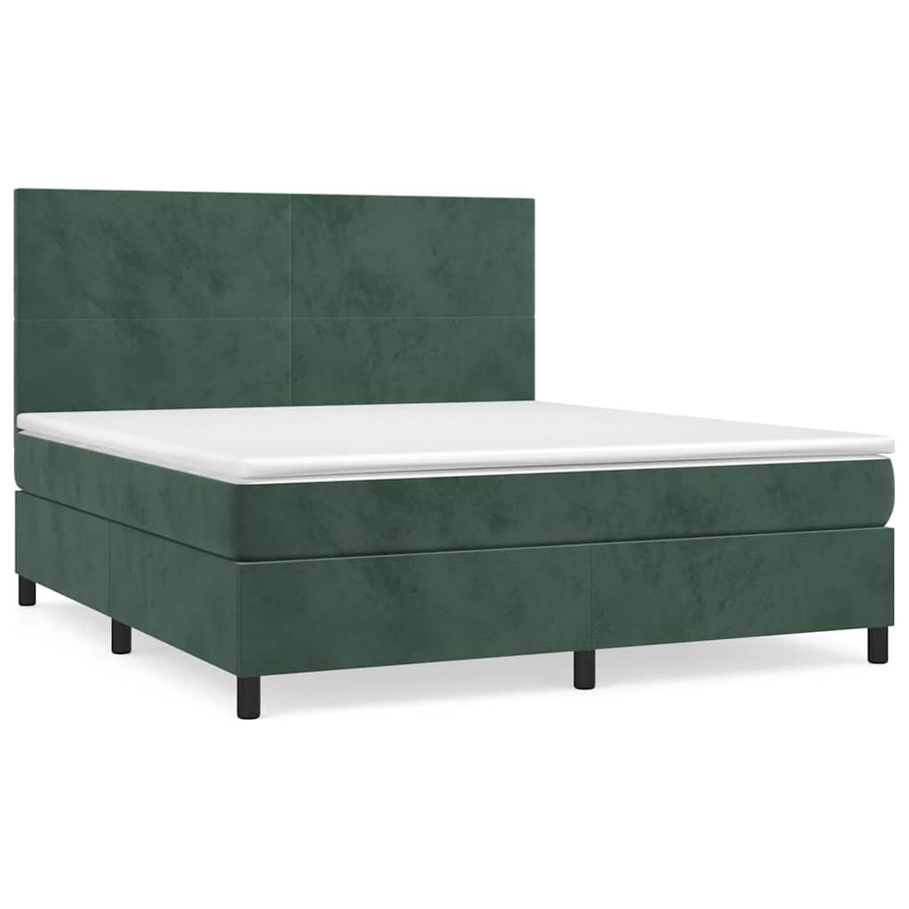 vidaXL sötétzöld bársony rugós ágy matraccal 180x200 cm