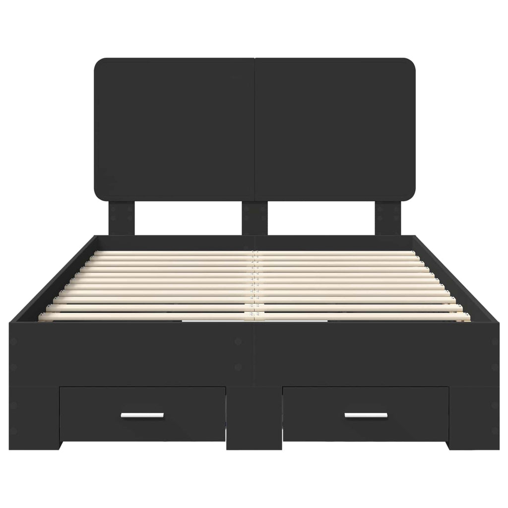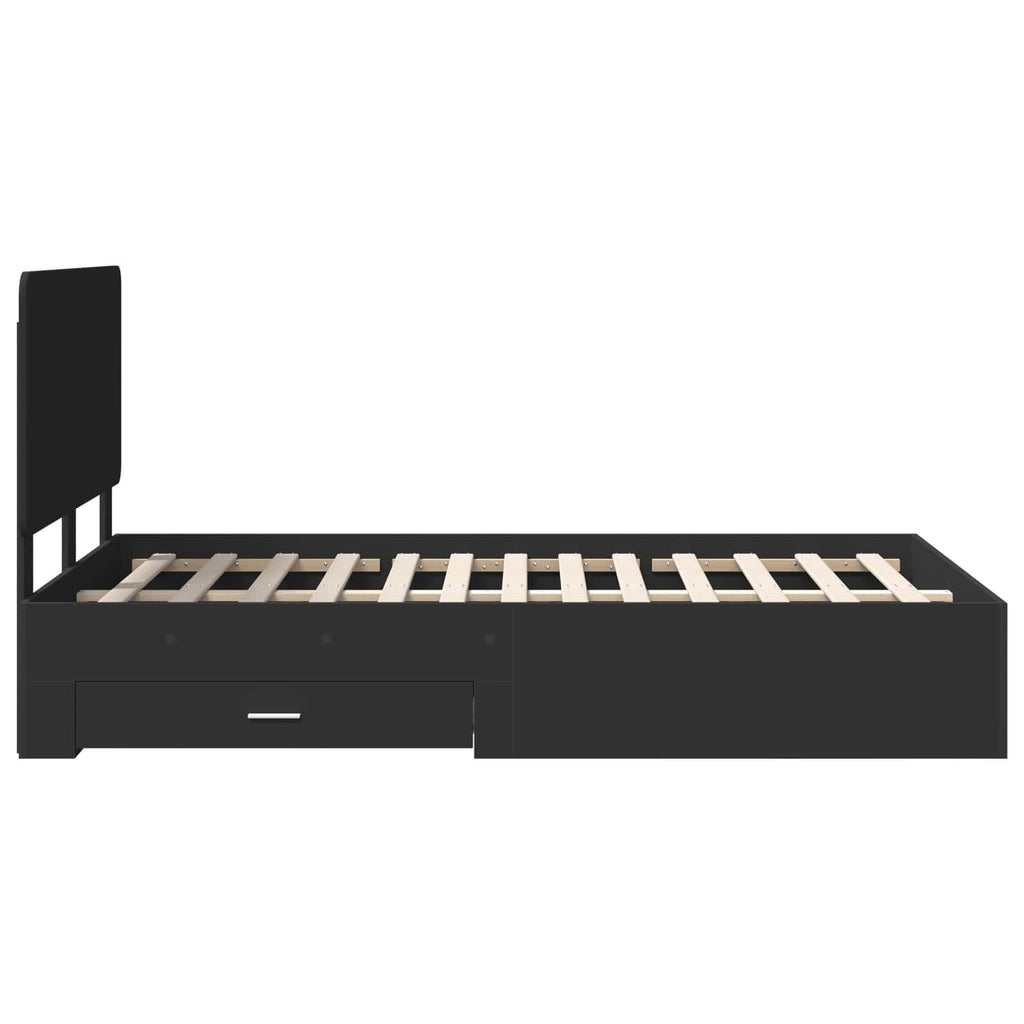 vidaXL Ágykeret fejtámlával fiókkal Fekete 120 x 190 cm Faanyag