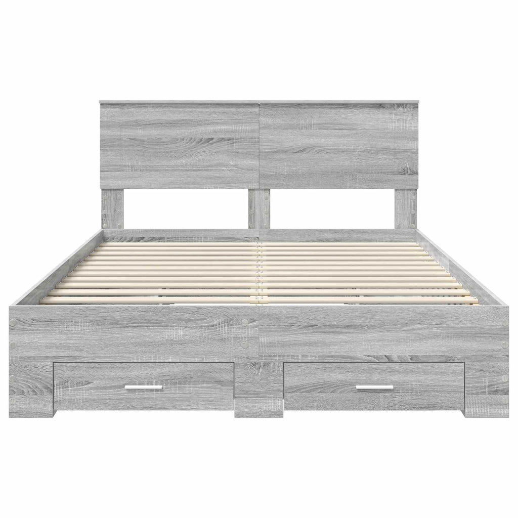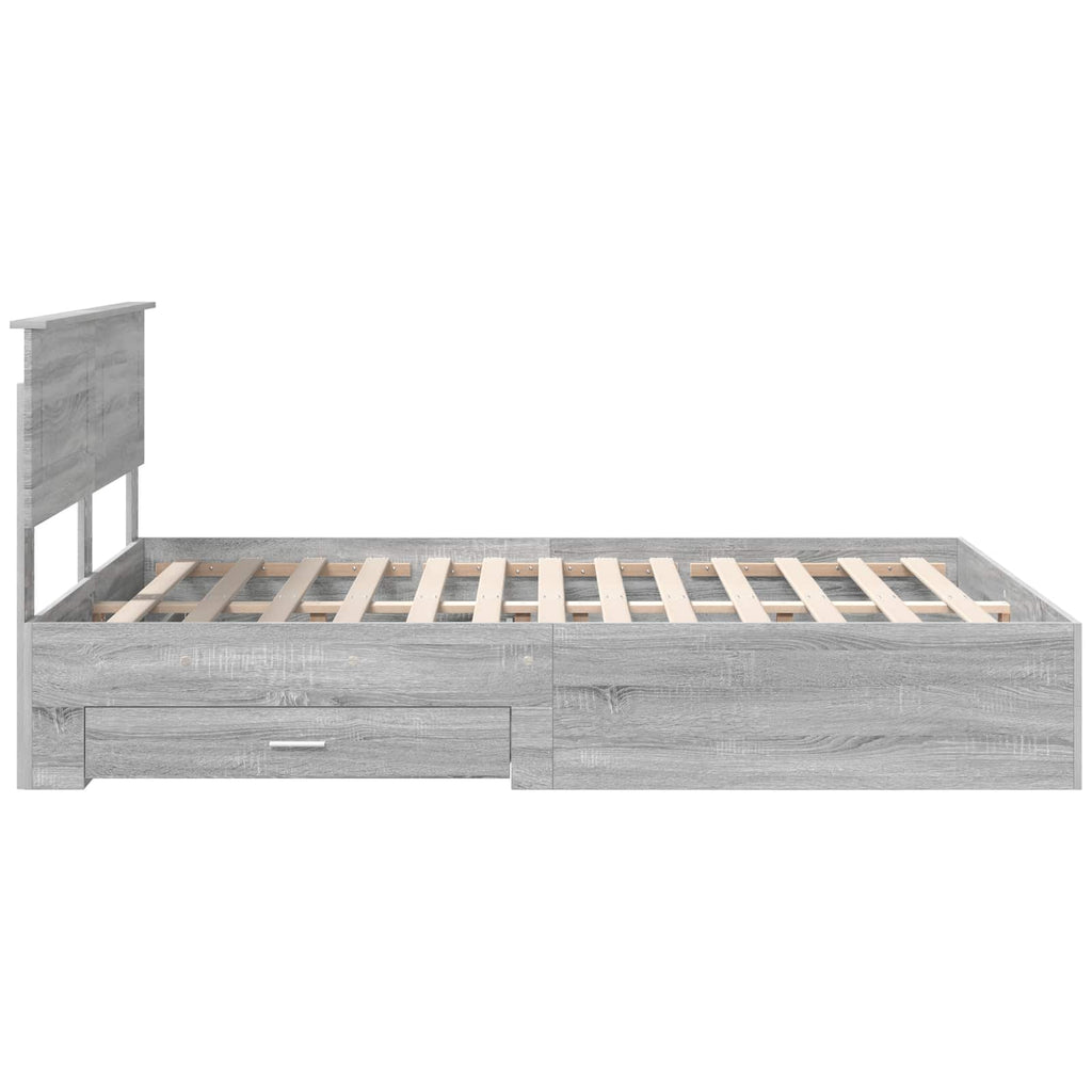 vidaXL Ágykeret fejtámlával fiókkal Szürke Sonoma 140 x 200 cm Faanyag
