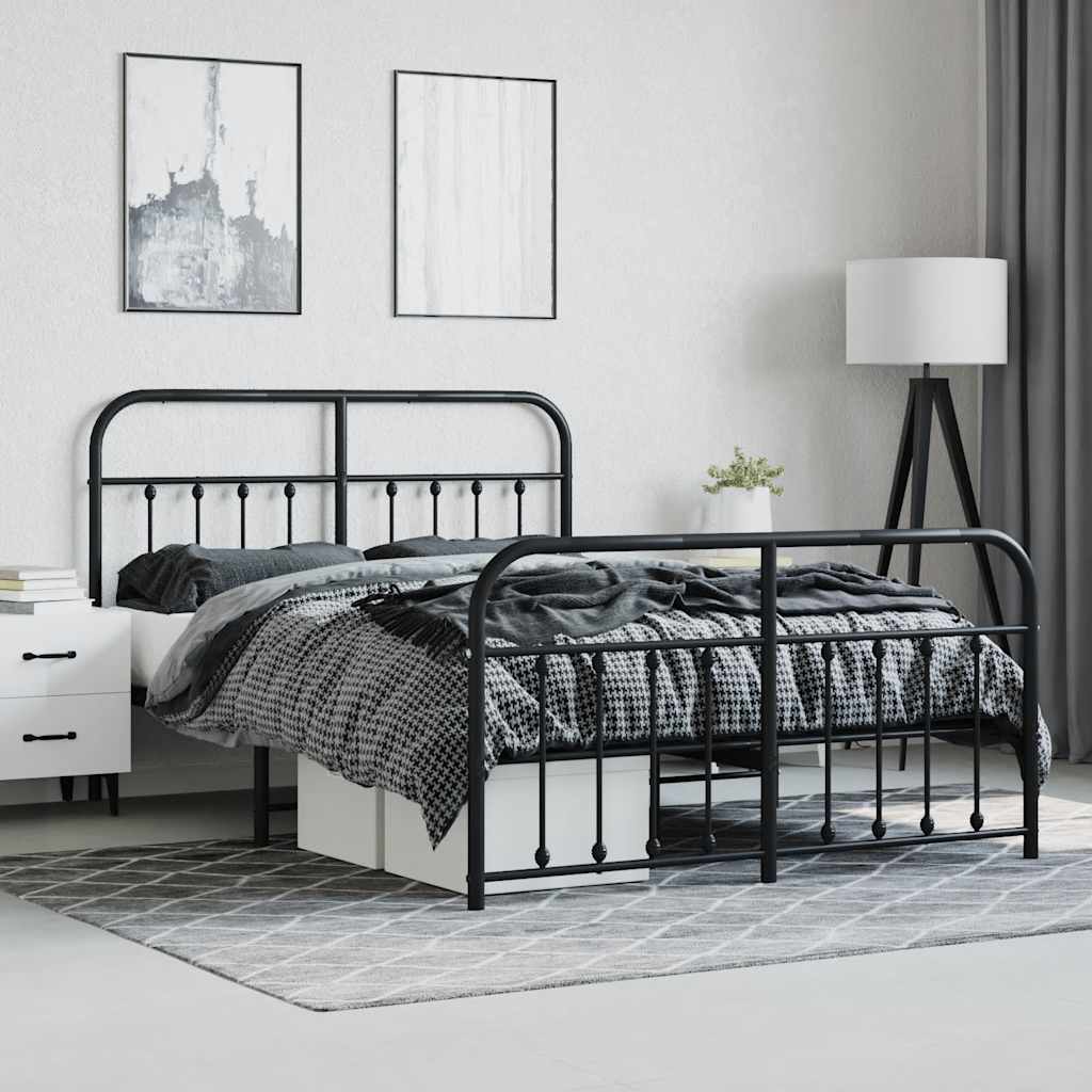 vidaXL fekete fém ágykeret fej- és lábtámlával 140 x 190 cm