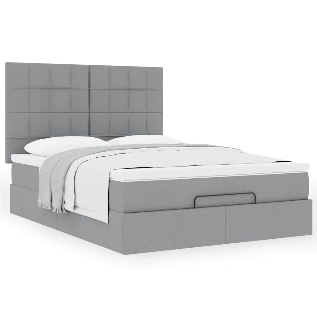 vidaXL Ottomán ágykeret matraccal világosszürke 140x190 cm szövet