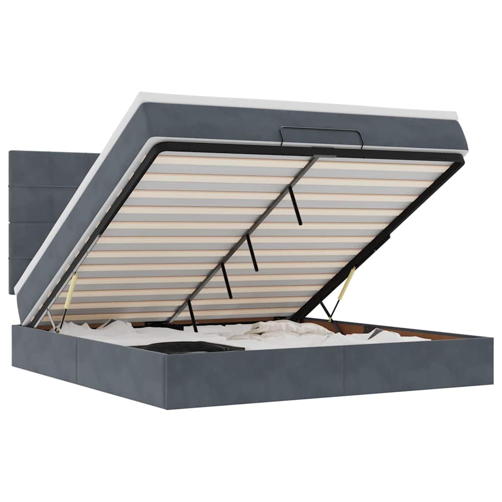 vidaXL Ottomán ágykeret matracokkal sötét szürke 160x200cm bársony