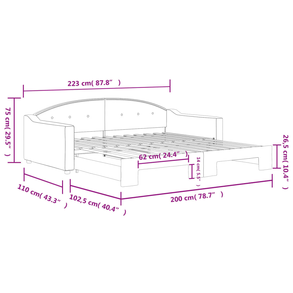vidaXL sötétszürke kihúzható szövet heverő 100 x 200 cm