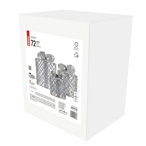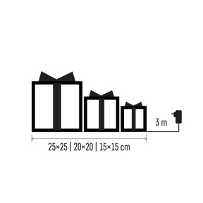 termék: ajándékok, fény színe: hideg fehér, méretek: 15/20/25 × 15/20/25 cm, használat: beltéri, időzítő, távvezérlő: nem, tápellátás típusa: AC (hálózati) adapter, fényforrás: LED, LED-ek száma: 72, tápvezeték hossza: 3 m, fogyasztás: 1,35 W, bemeneti feszültség: 230 V AC, kimeneti feszültség: 4,5 V DC, védettség: IP20, élettartam: 10 000 óra, anyag: fém, garancia-időszak: 2 év, értékesítési csomagolás: 1 db, doboz