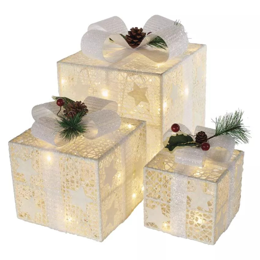LED díszes ajándékok, 3 méret, beltéri, meleg fehér