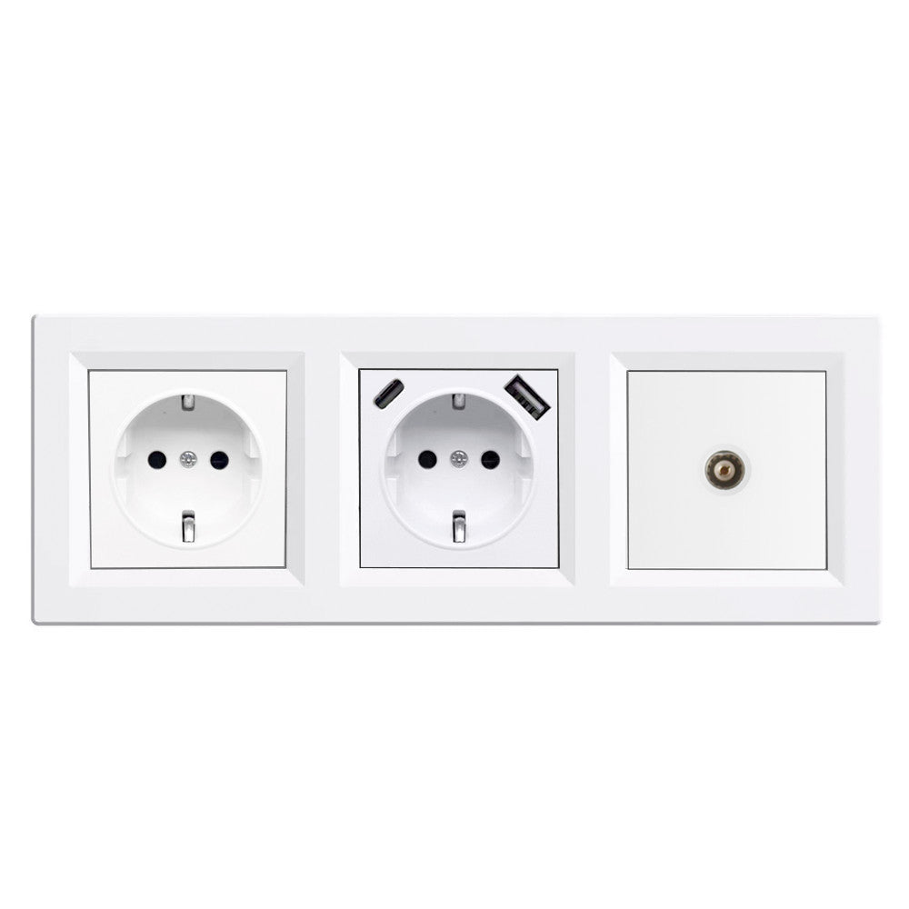 Nova földelt csatlakozóaljzat dugalj, USB, TV csatlakozóval fehér kerettel – Komplett megoldás egy stílusos és funkcionális fali szerelvényrendszerhez