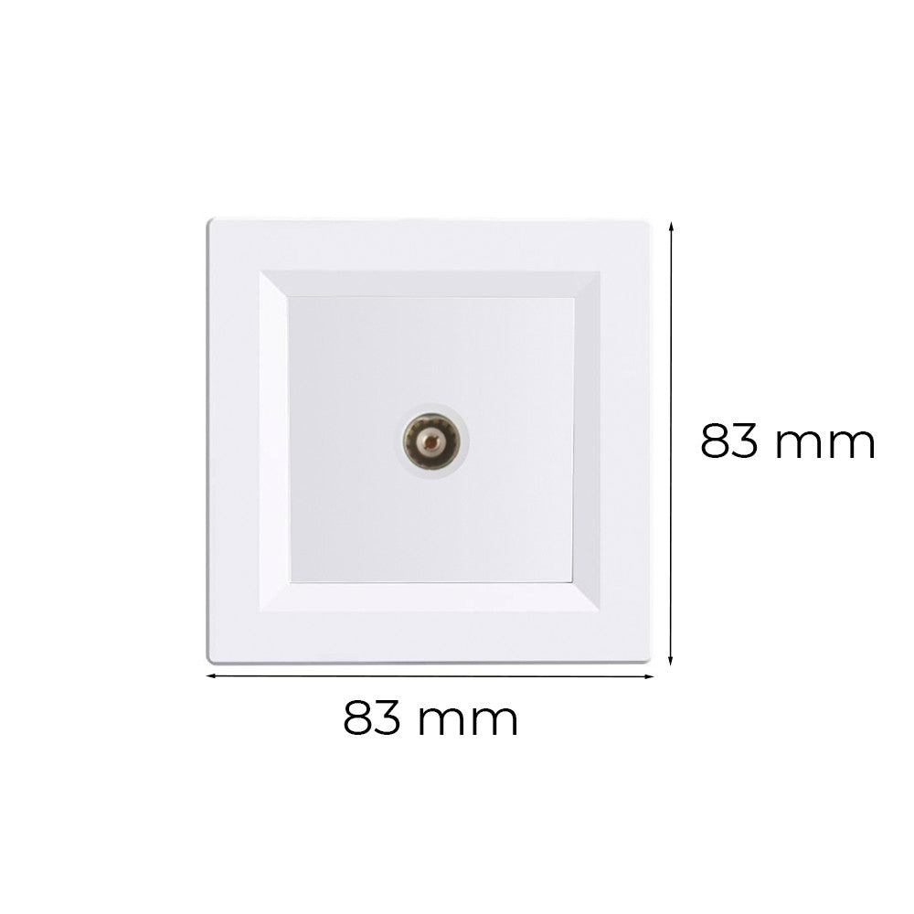 Ez a termékváltozat gyárilag tartalmazza a fehér színű egyes keretet, így nem szükséges külön keretet vásárolni. A lekerekített peremű, kompakt 83 × 83 mm-es kivitel vizuálisan harmonikusan illeszkedik a modern enteriőrökbe, legyen szó otthoni vagy irodai környezetről.