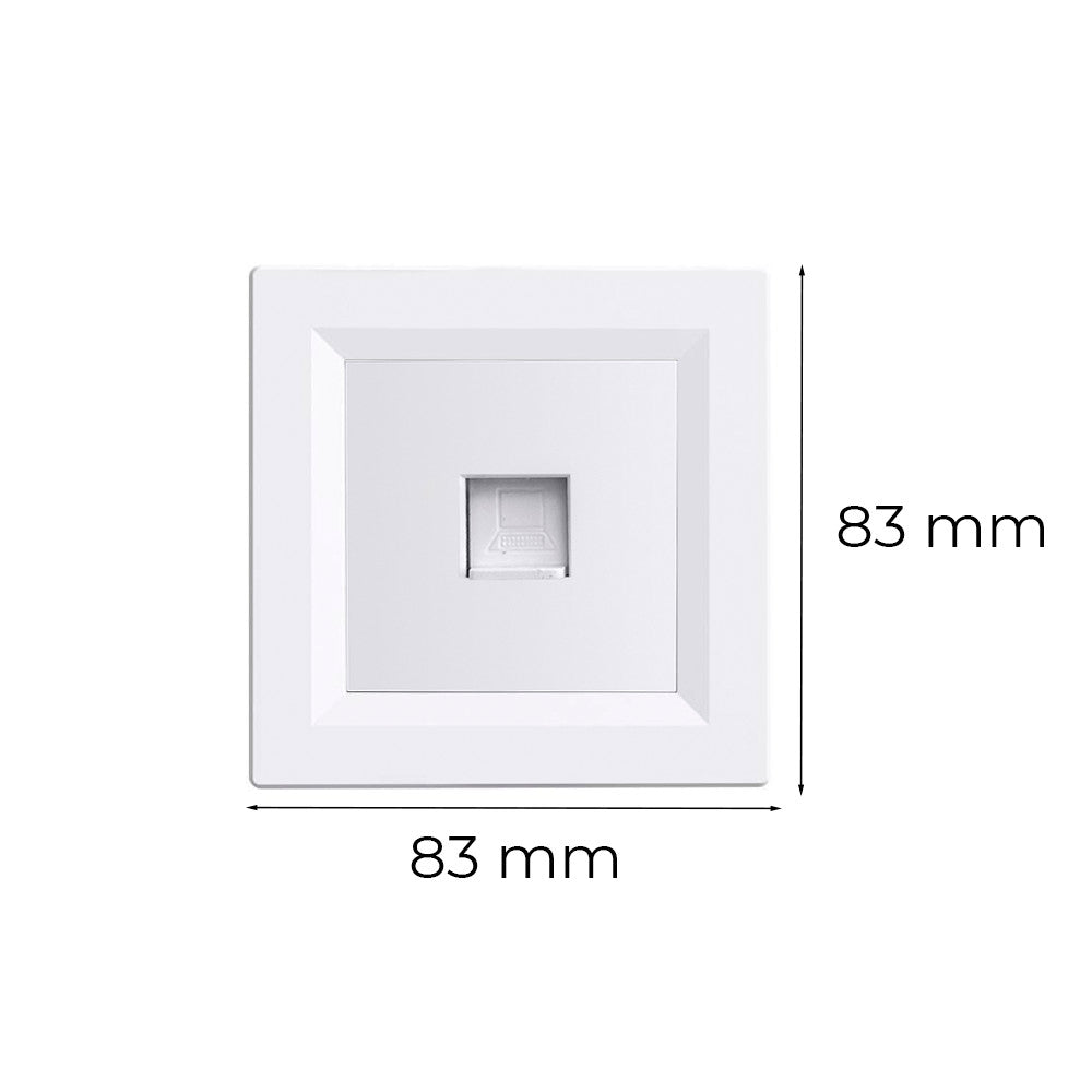 A termék gyárilag tartalmazza a fehér egyes keretet, így nem kell külön kiegészítőt vásárolni. A lekerekített élformájú, 83 × 83 mm-es méretű kialakítás modern és diszkrét megjelenést nyújt, amely bármilyen beltéri enteriőrbe harmonikusan illeszkedik.