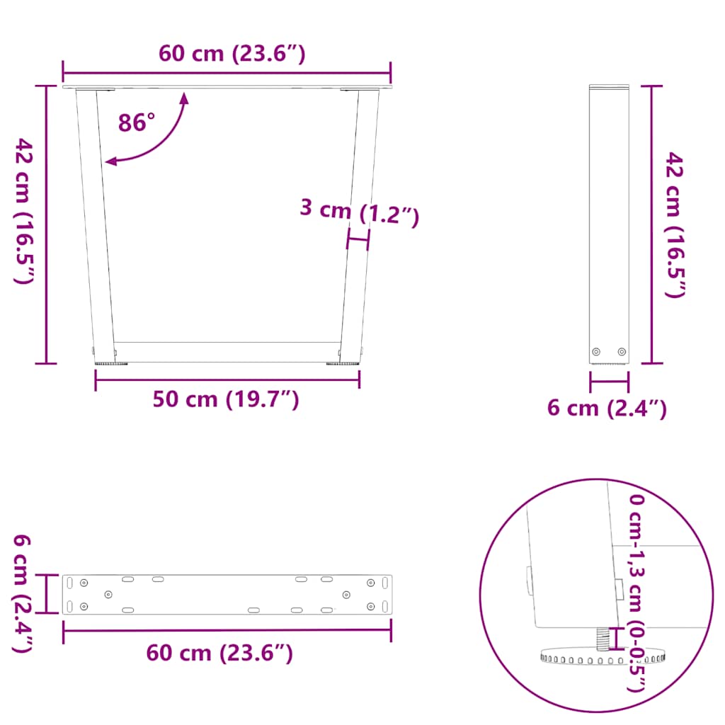 vidaXL 2 db V-alakú natúr acél dohányzóasztal láb 60 x (42-43,3) cm