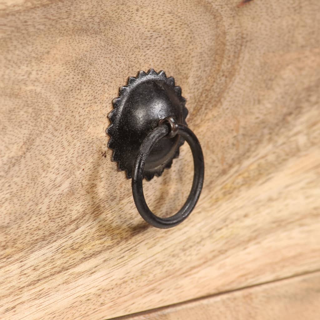 A kisasztal kézzel, mangófából készült, így rendkívül stabil, strapabíró, időtálló és gyönyörű, a kézműves munka ráadásul kiemeli látványos retró stílusát. A megmunkálás minden lépése a legnagyobb gondossággal történt, legyen szó akár a csiszolásról, a festésről vagy a lakkozásról. A kézműves munkának és a fa gyönyörű erezetének köszönhetően minden bútordarab egyedi, és kissé eltér a többitől. Az asztallap egyben tálcaként is szolgál, mely könnyedén levehető, és külön is használható. Emellett bőséges helyet kínál italok vagy dísztárgyak, például gyümölcsös kosarak vagy vázák tárolásához. A kisasztal két fiókkal van felszerelve, így különböző dolgait rendezetten tárolhatja egy karnyújtásnyira. Az X-alakú lábak hozzájárulnak az asztal stabilitásához és mutatós retró stílusához. Könnyen összeszerelhető.