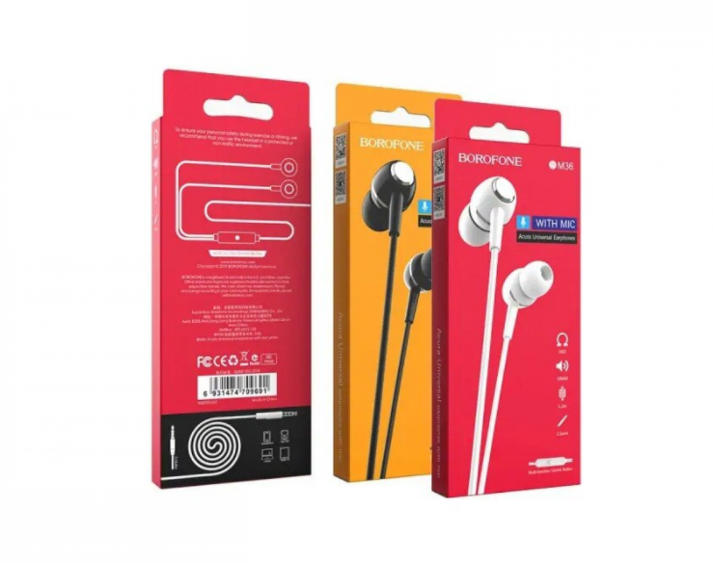 Borofone BM36 Acura vezetékes fülhallgató mikrofonnal , 3,5mm-es audio csatlakozóval. Egygombos vezérléssel, 1,2 m elasztikus kábellel. Apple és Android kompatibilis .Hangszóró mérete: 10 mm. Súly: 10 g.