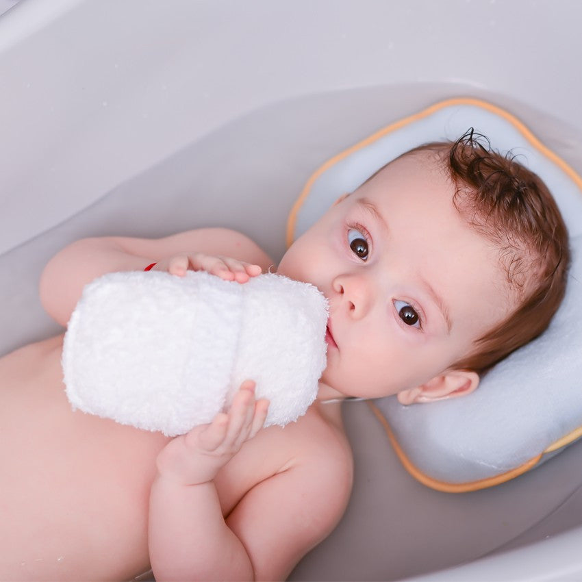 • Középen kiemelt része lehetővé teszi, hogy könnyen kézben lehessen tartani fürdetés közben és finoman átdörzsöli a baba bőrét.