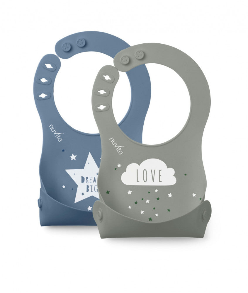 - Az előke alja begombolható, így felfogja a lehulló ételt, kigombolva pedig még nagyobb felületen védi a kicsi ruháját a maszattól.