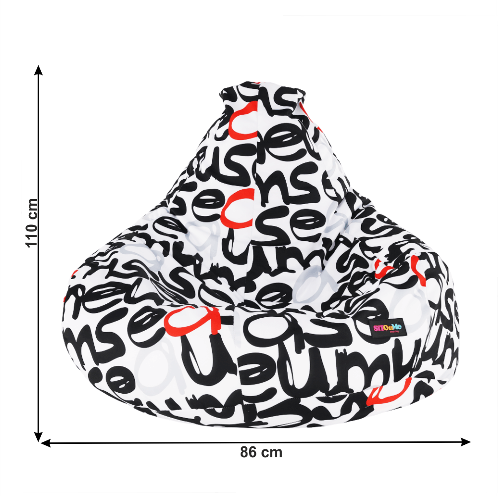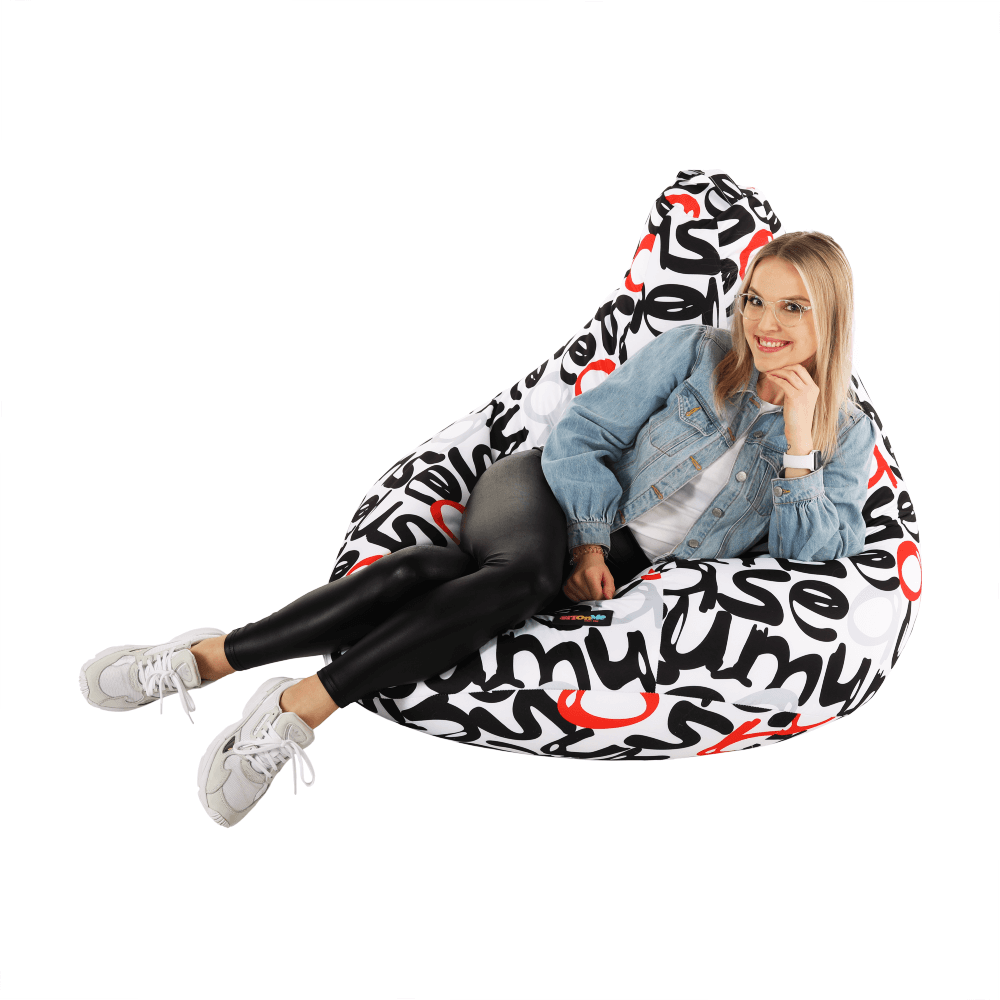Anyag: szövet/EPS (polisztirol golyók) Szín: fehér/fekete/szürke/piros minta Méretek (SzxMa): 86x110 cm Kitöltés térfogata 250 l Teherbírás: 90 kg Szövet kopásállósága a Martindale teszt szerint: 68 000 ciklus Bontásban szállítva