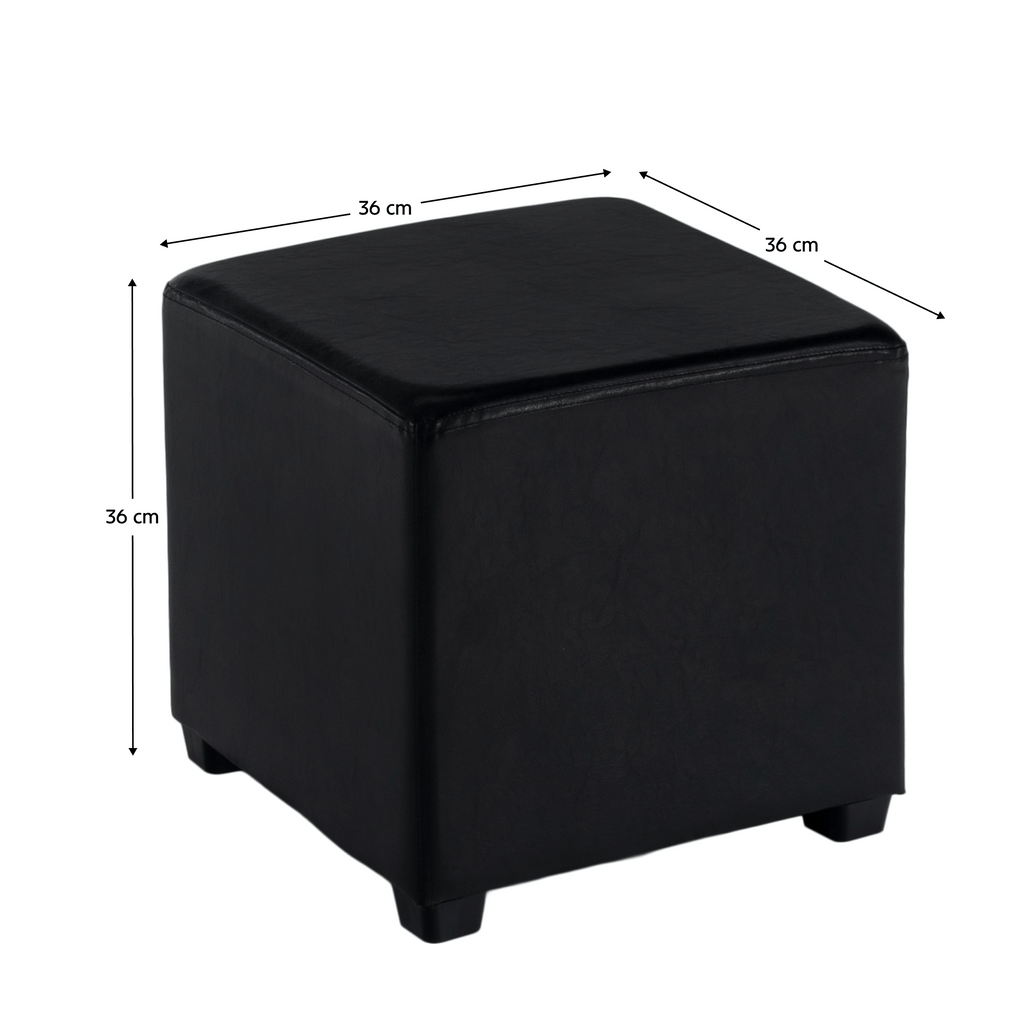 Puff NIKI Anyag: textilbőr, A szövet kopásállósága: 100 000 Martindale Színváltozat: fekete Méretek (SzéxMéxMa): 36x36x36 cm. Teherbírás: 100 kg