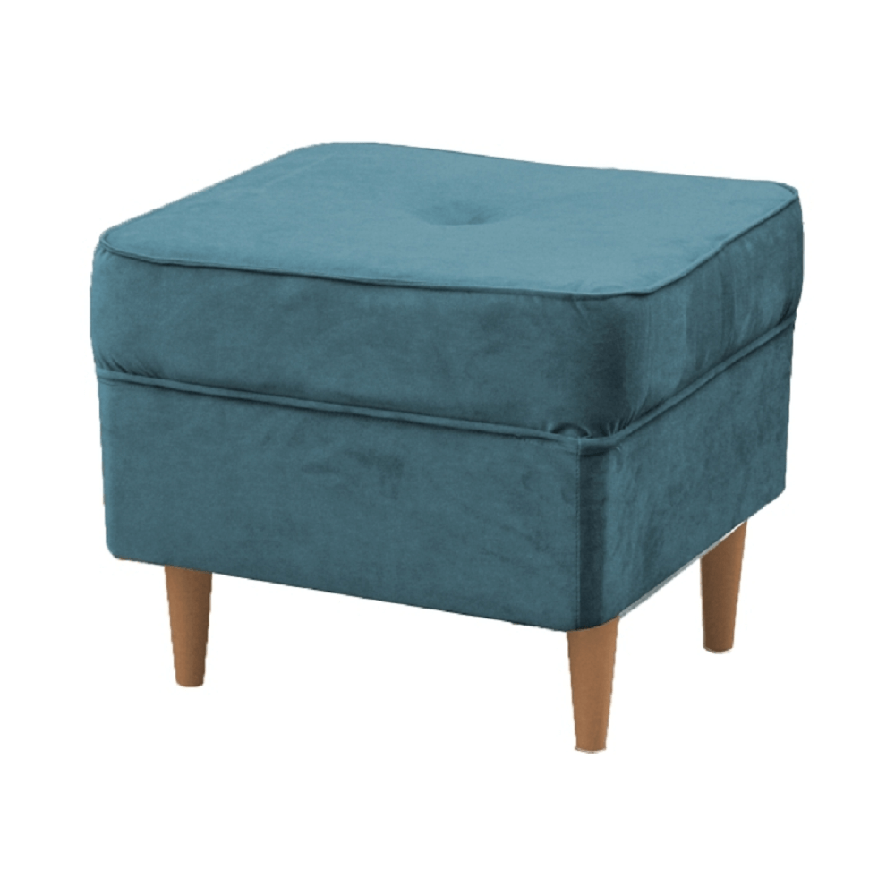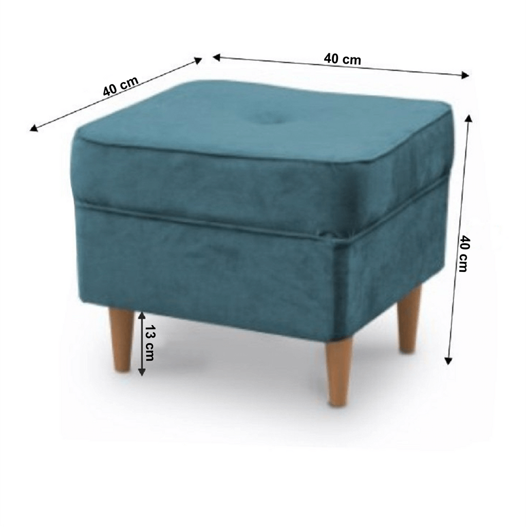 Modern puff RUFINO 3 NEW elegáns dizájnban. Anyag: szövet Trinity A szövet kopásállósága: 55 000 Martindale Színe: petróleum/bükk Méretek: (SzéxMéxMa) 40x40x40 cm Terhelhetőség ágyanként: 110 kg Szállítás összeszerelve.