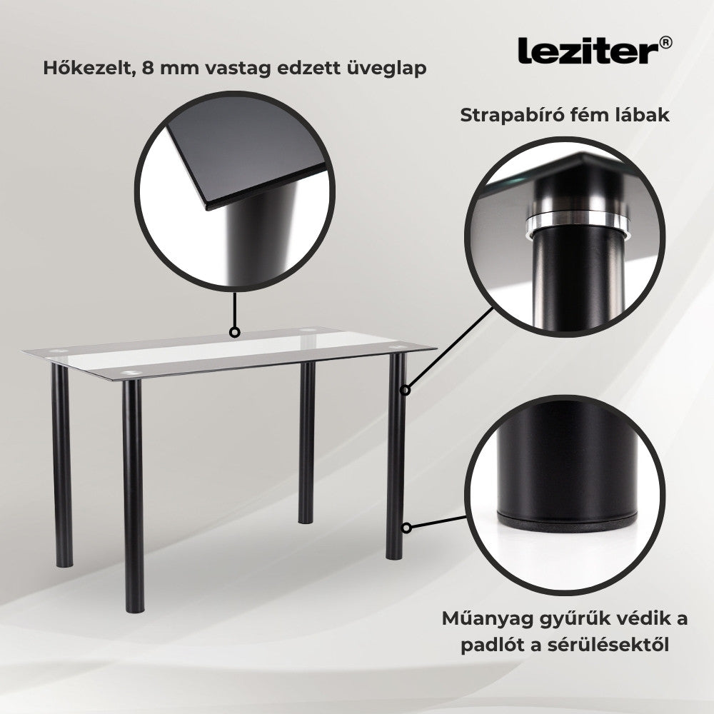 Leziter Riona 140 cm üveg étkezőasztal – Tágas, elegáns és ellenálló