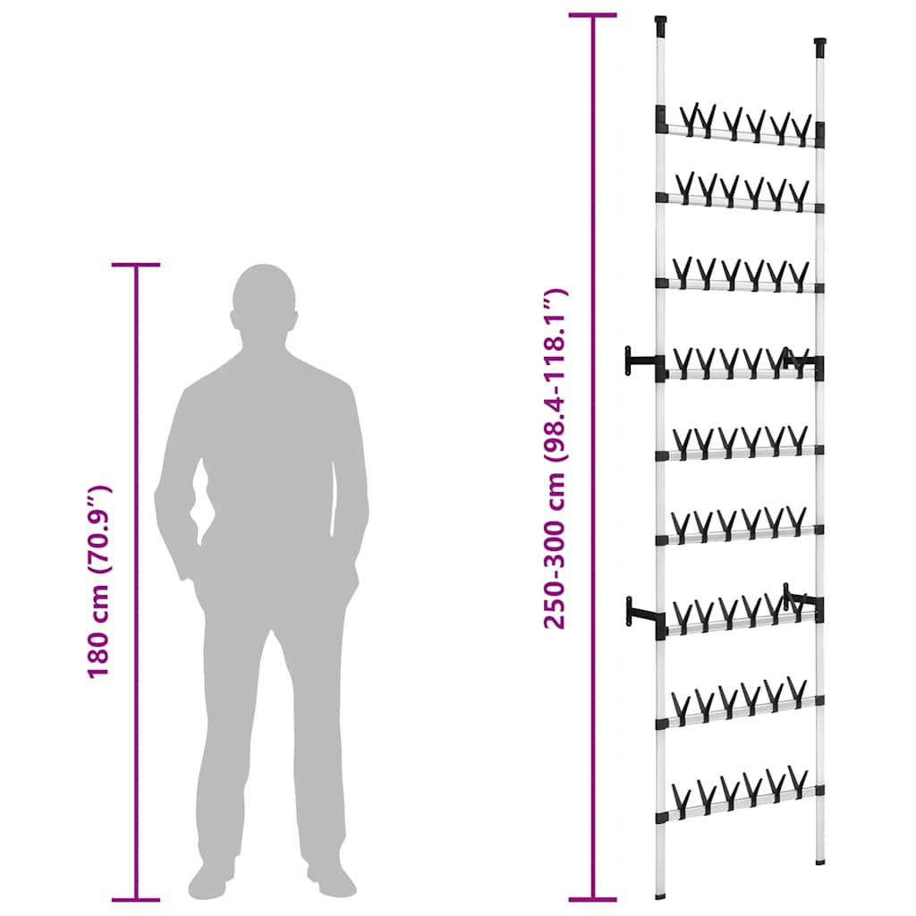 A teleszkópos cipőtartó alumíniumból készült, így masszív és erős. A tárolóegység a teleszkópos rendszernek és az állítható magasságnak köszönhetően különböző térbeli elrendezésekhez alkalmazható. Egyedülálló és sokoldalú eszköz cipői rendezésére és a helytakarékosságra.