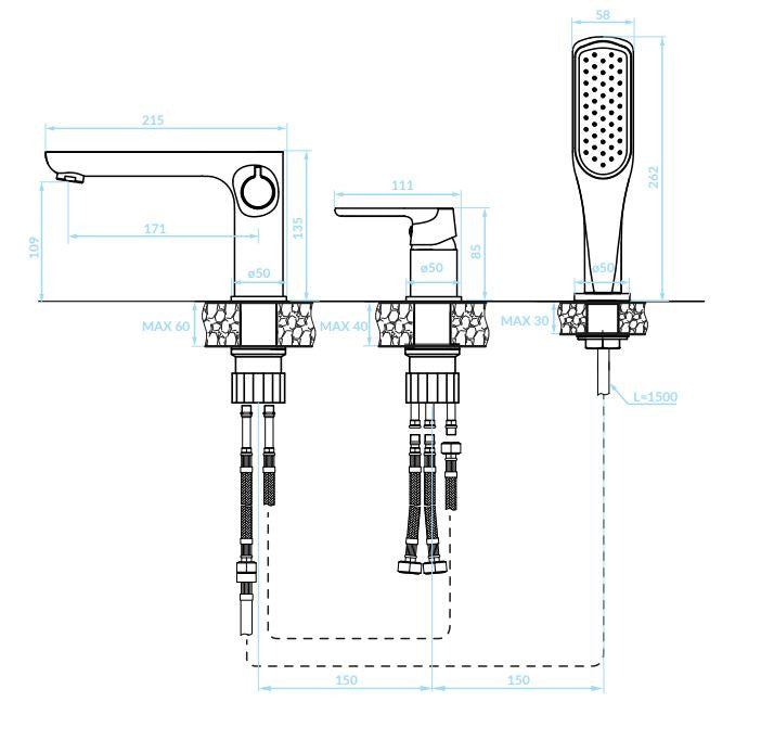 LAVEO DIMA süllyesztett kádcsap, 3 részes, króm