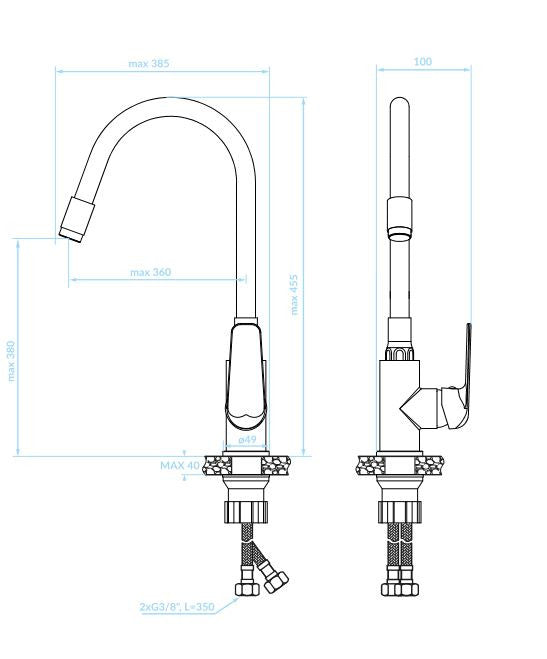 LAVEO ELZA álló csaptelep rugalmas tömlővel, matt fekete
