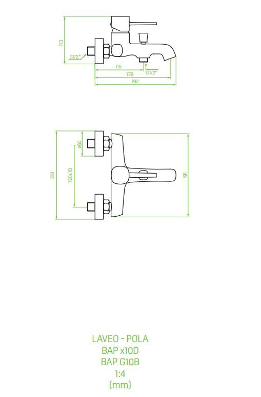 LAVEO POLA falra szerelhető kádcsap zuhanyszett nélkül, fekete