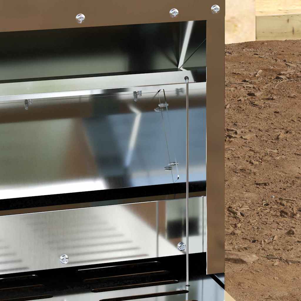• Modern acél kivitel: A Tyúk Treadle Etető erős acélból készült, ami tartósságot és stílust ad, így bírja a rengeteg igénybevételt és véd a kártevőktől is.