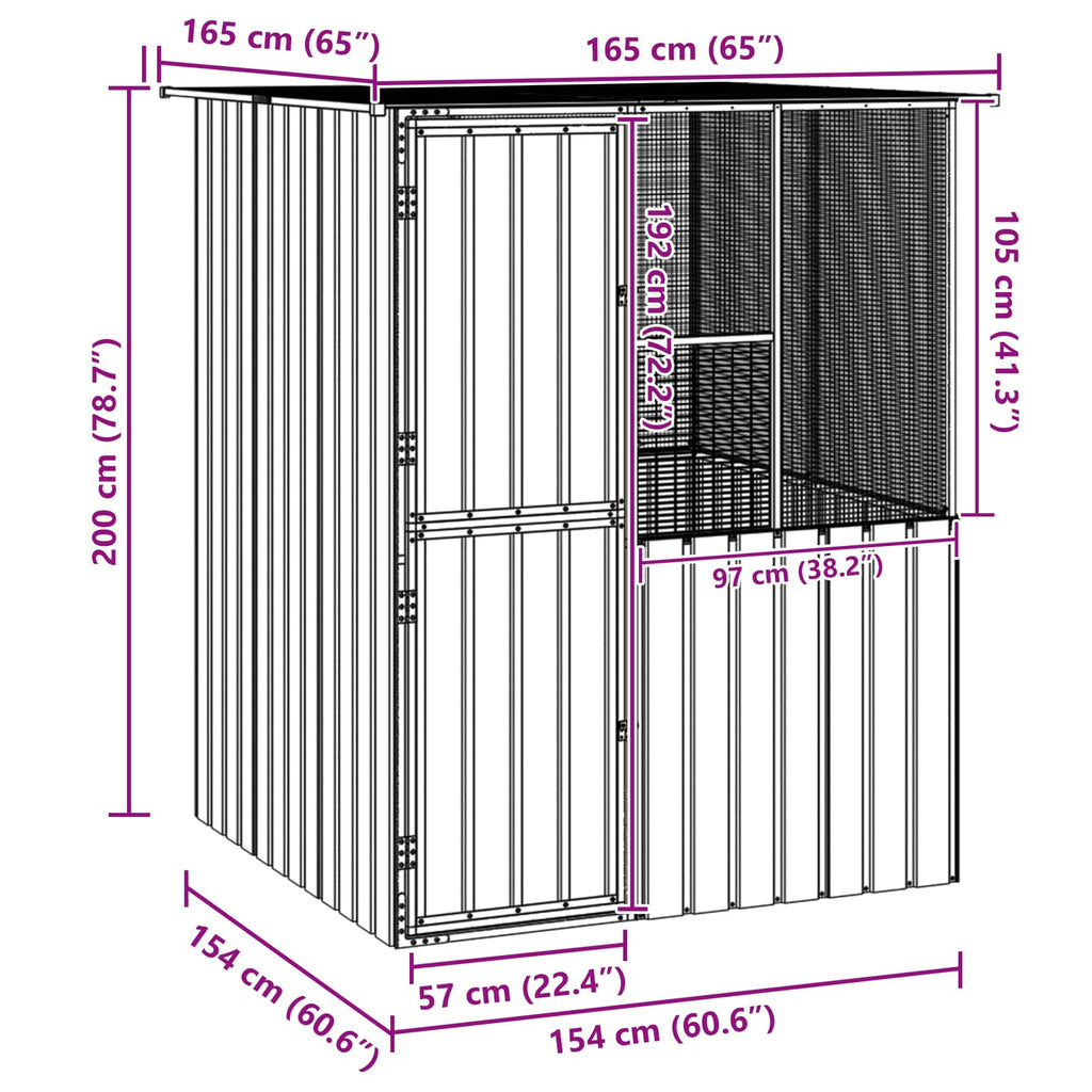 - Horganyzott acél váz Erős horganyzott acélból készült, ami szilárd és biztonságos otthont ad a házi kedvenceidnek. Ellenáll a kopásnak és megőrzi erejét az időjárás viszontagságai között. Robusztus felépítése segít a mindennapi használat során, miközben biztonságos menedéket nyújt a tollas barátoknak.