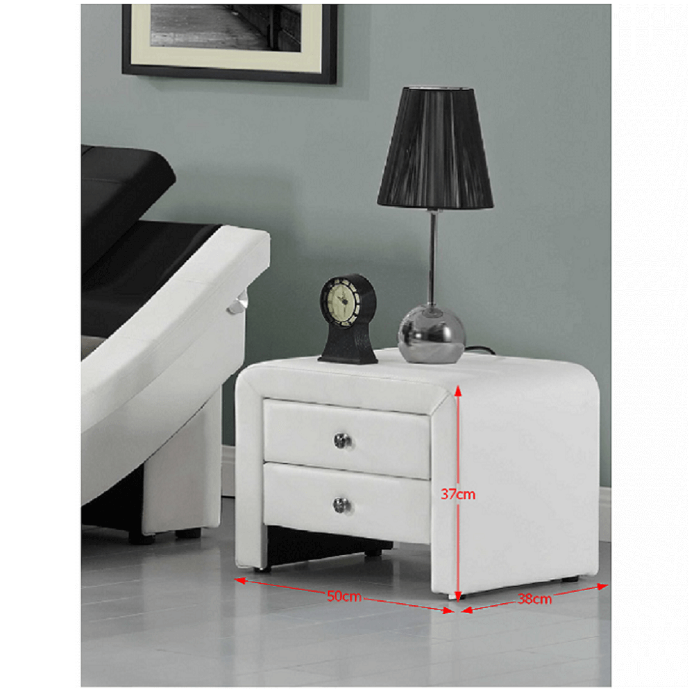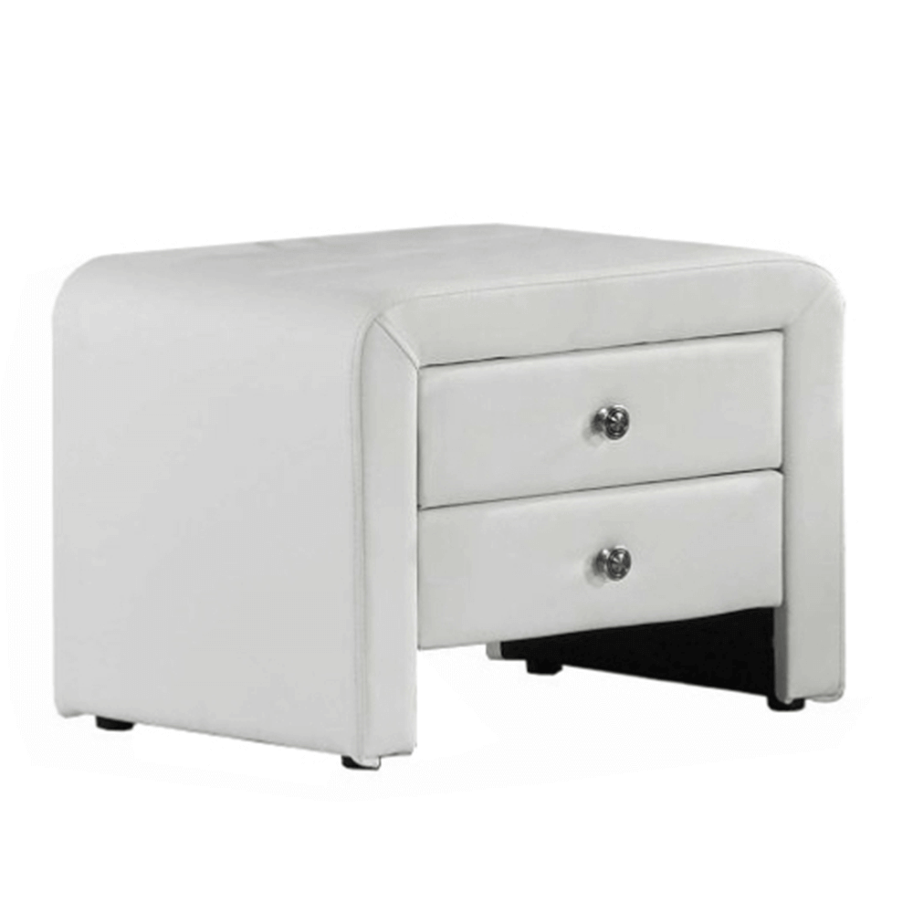 Éjjeliszekrény, WILSON Anyaga: textilbőr/fém fogantyúk Színe: fehér Méretek (SzéxMéxMa): 50x38x37 cm Két fiók Fém fogantyúval a fiókon Összeszerelt állapotban szállítva.