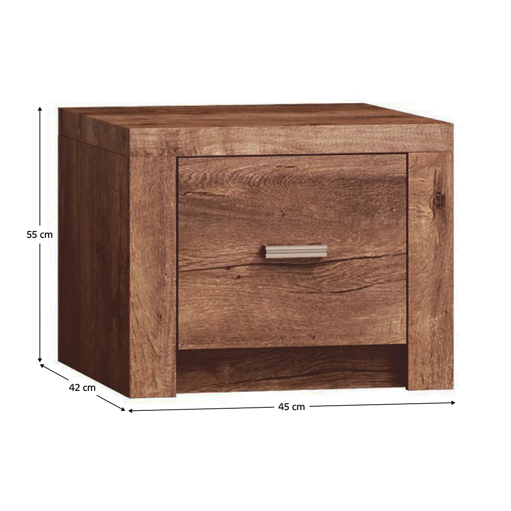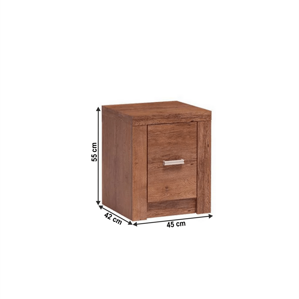 Éjjeliszekrény luxus elemes bútorból Váz vastagsága: 48 mm Fém fogantyúk Anyag: laminált DTD/ABS élek Színváltozat: világos kőris Méretek (SzéxMéxMa): 45x42x55 cm Szállítás szétszerelve.