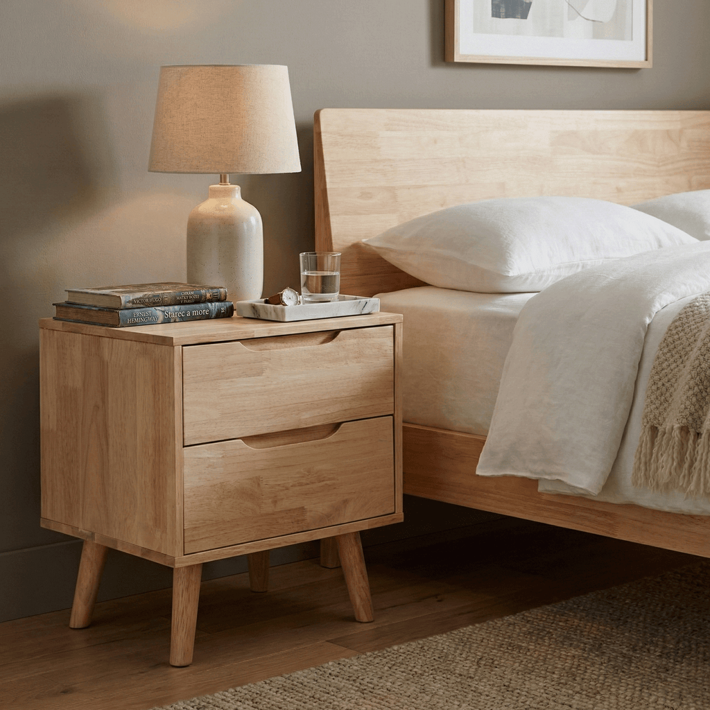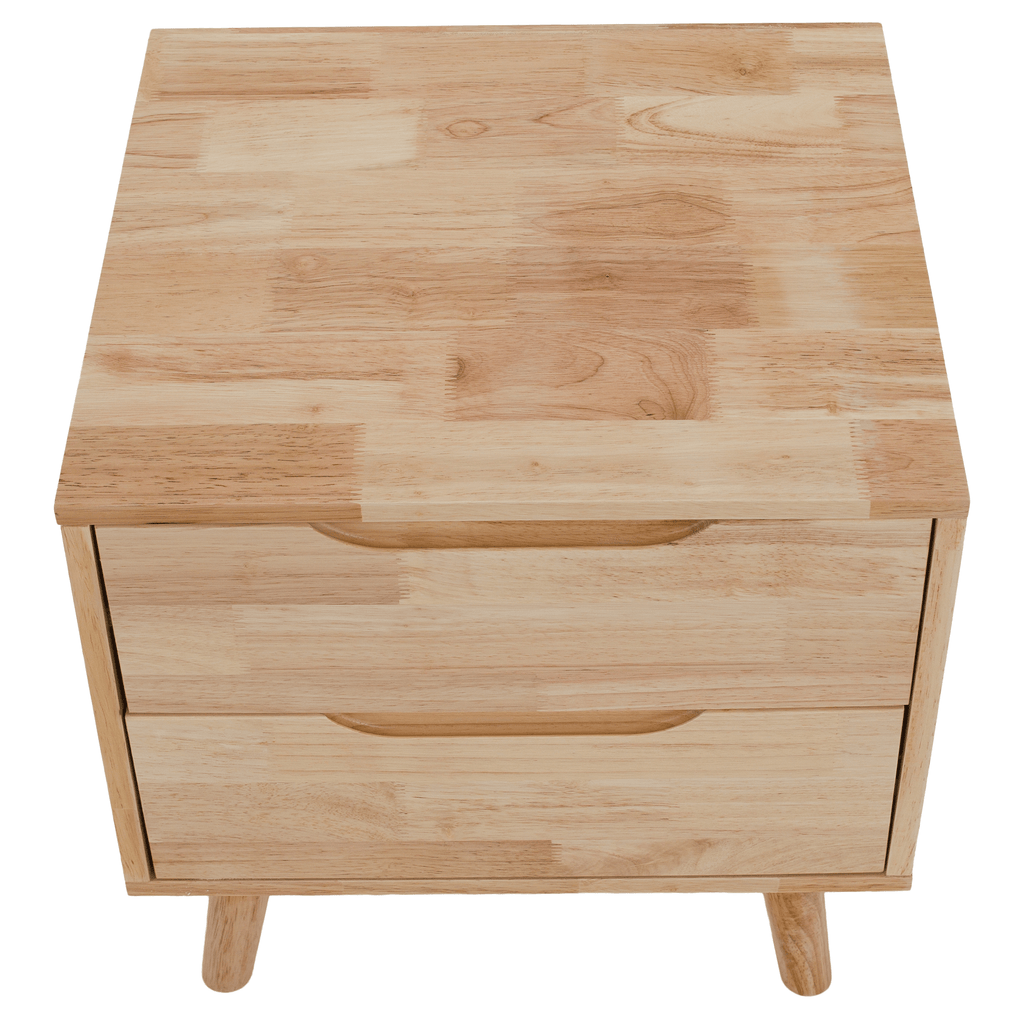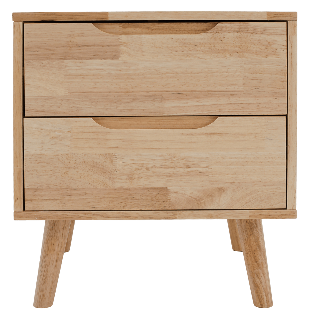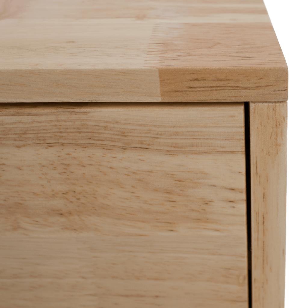 Egy elegáns és praktikus kiegészítő, amely jól illik az ágyához: ez a BRUNI éjjeliszekrény. Egy modell, amely könnyen elfér bármilyen térben, ugyanakkor elegendő tárhelyet kínál az ágy mellett két fiók formájában. Felületét praktikusan kihasználhatja egy lámpa, dekorációs elemek vagy tárgyak elhelyezésére, amelyeket mindig kéznél szeretnél tartani. A keret és a lábak tartós és erős kaucsukfából készültek, a fiókok pedig fenyőfából. Mindez természetes kivitelben. A BRUNI nem tartalmaz klasszikus fogantyúkat, azonban a fiókok kezelését megkönnyítik a süllyesztett nyílások. Az asztal stabilitását a magas lábak biztosítják.