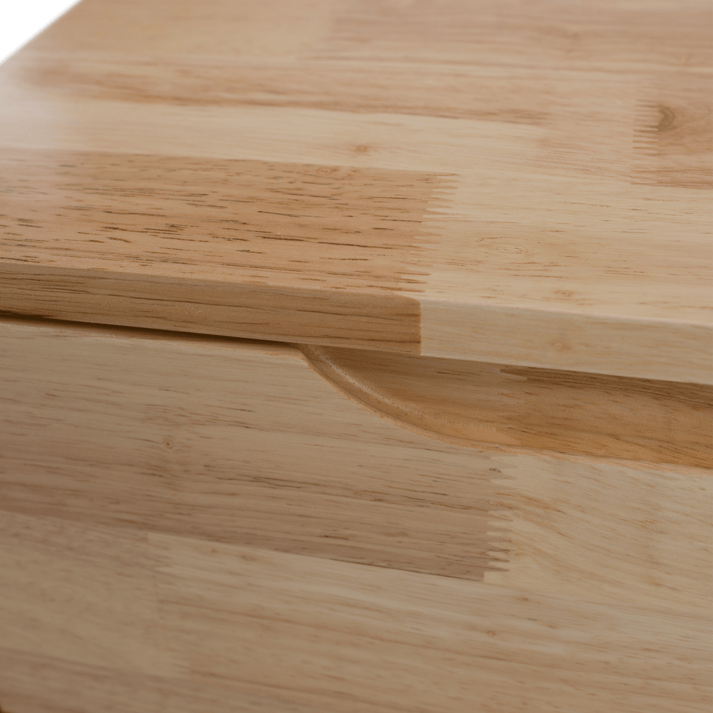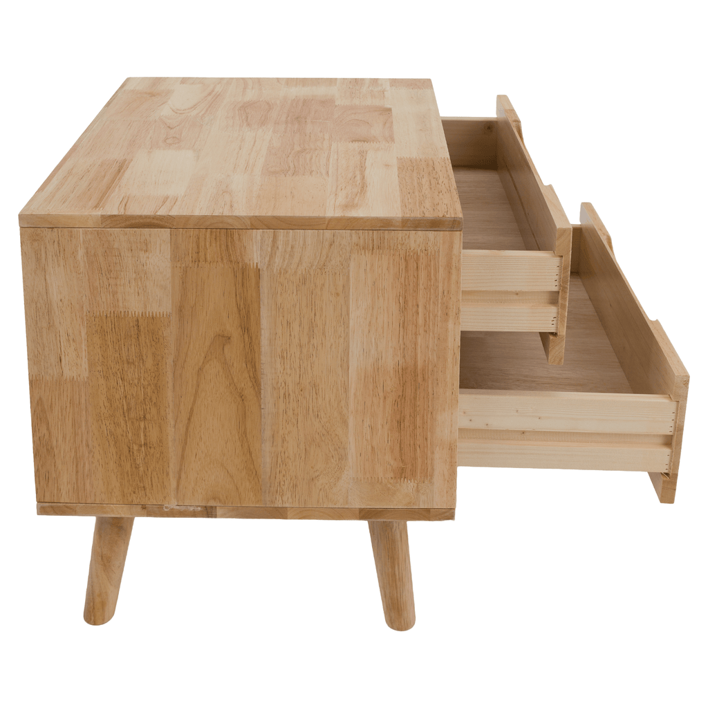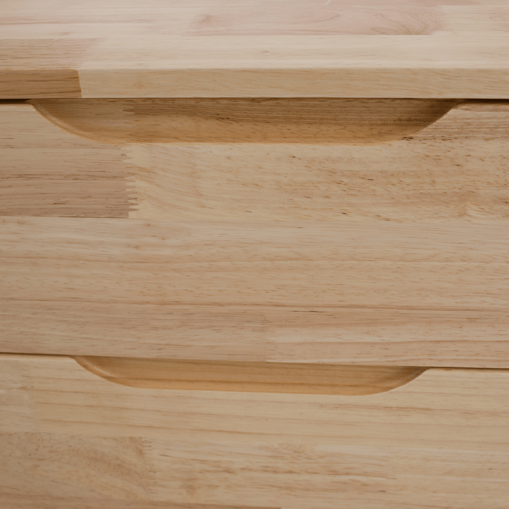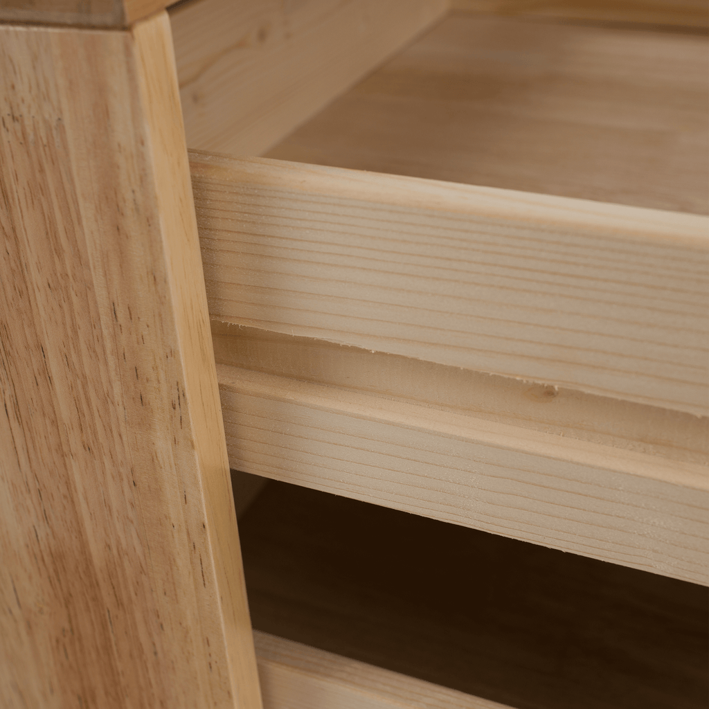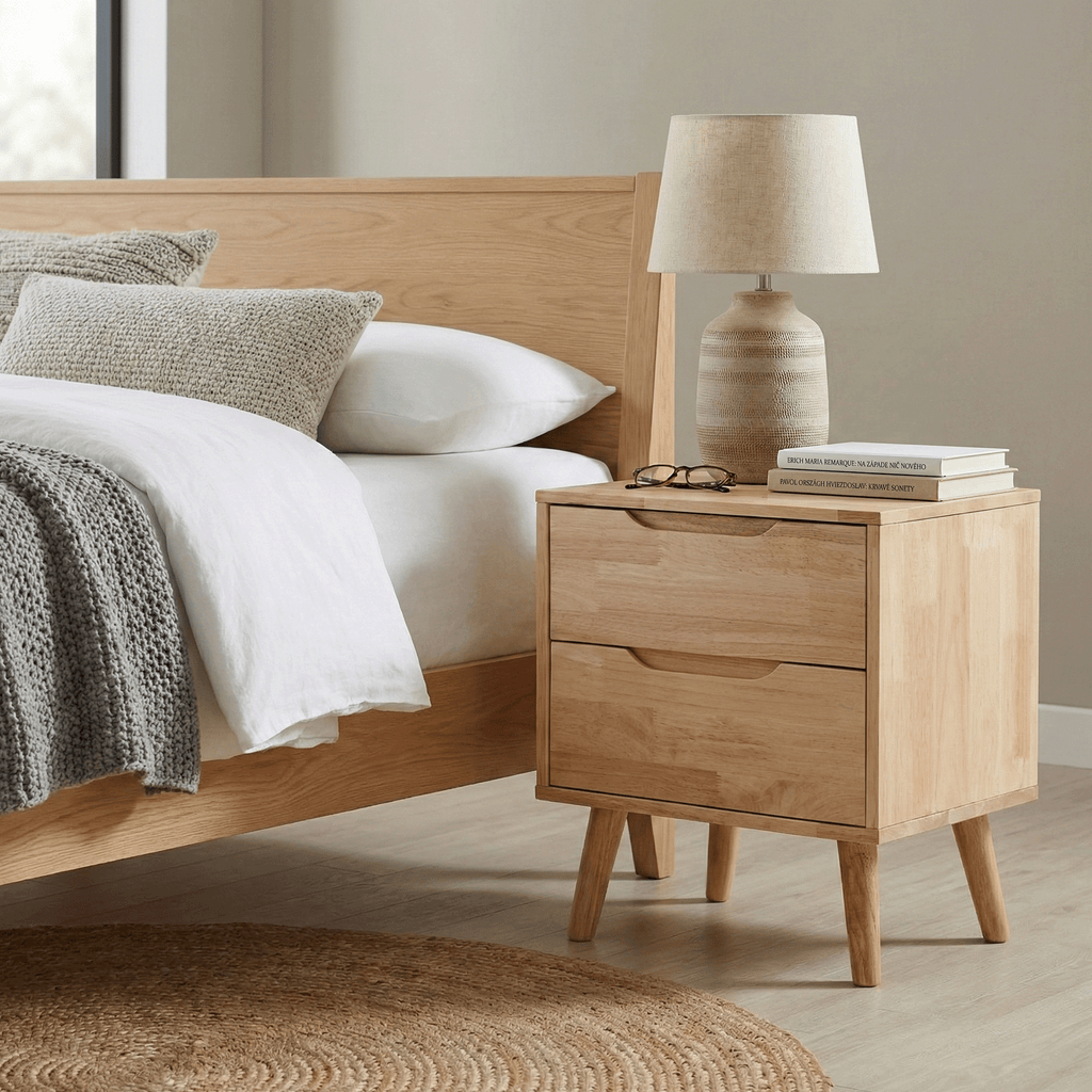 Egy elegáns és praktikus kiegészítő, amely jól illik az ágyához: ez a BRUNI éjjeliszekrény. Egy modell, amely könnyen elfér bármilyen térben, ugyanakkor elegendő tárhelyet kínál az ágy mellett két fiók formájában. Felületét praktikusan kihasználhatja egy lámpa, dekorációs elemek vagy tárgyak elhelyezésére, amelyeket mindig kéznél szeretnél tartani. A keret és a lábak tartós és erős kaucsukfából készültek, a fiókok pedig fenyőfából. Mindez természetes kivitelben. A BRUNI nem tartalmaz klasszikus fogantyúkat, azonban a fiókok kezelését megkönnyítik a süllyesztett nyílások. Az asztal stabilitását a magas lábak biztosítják.