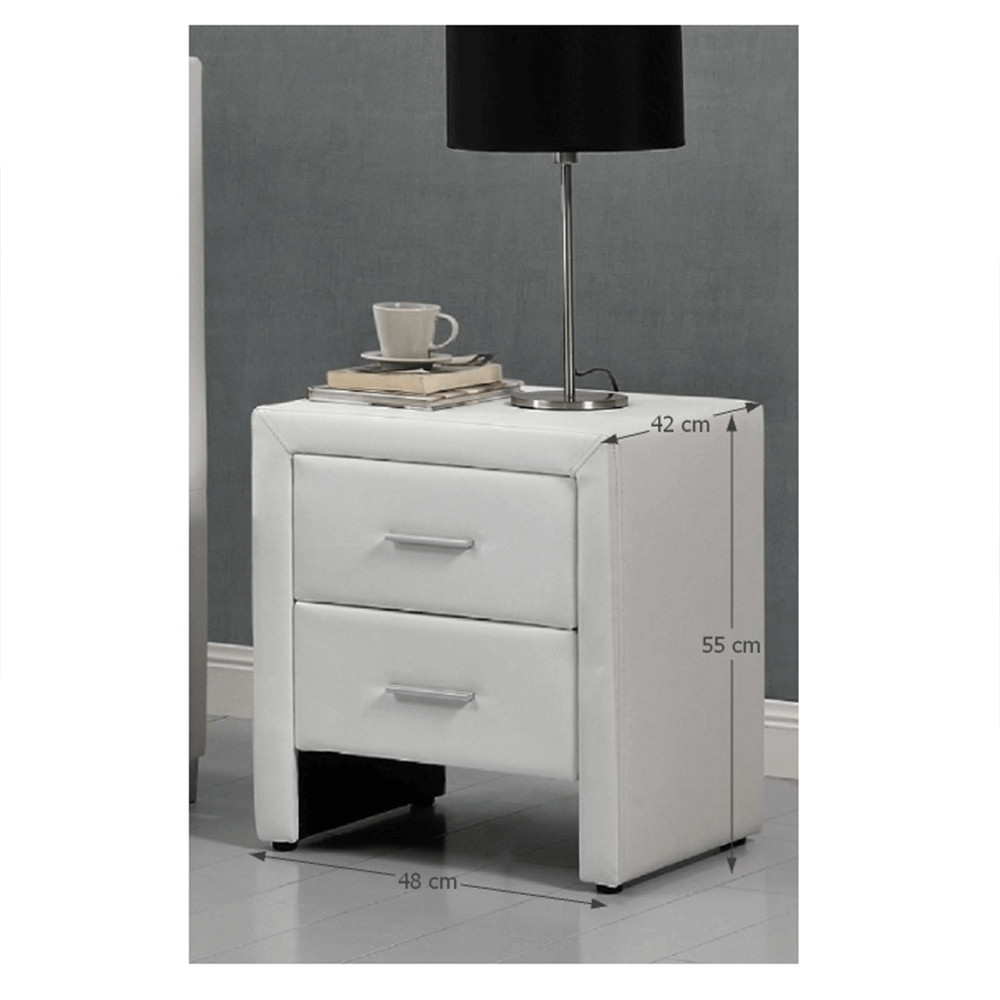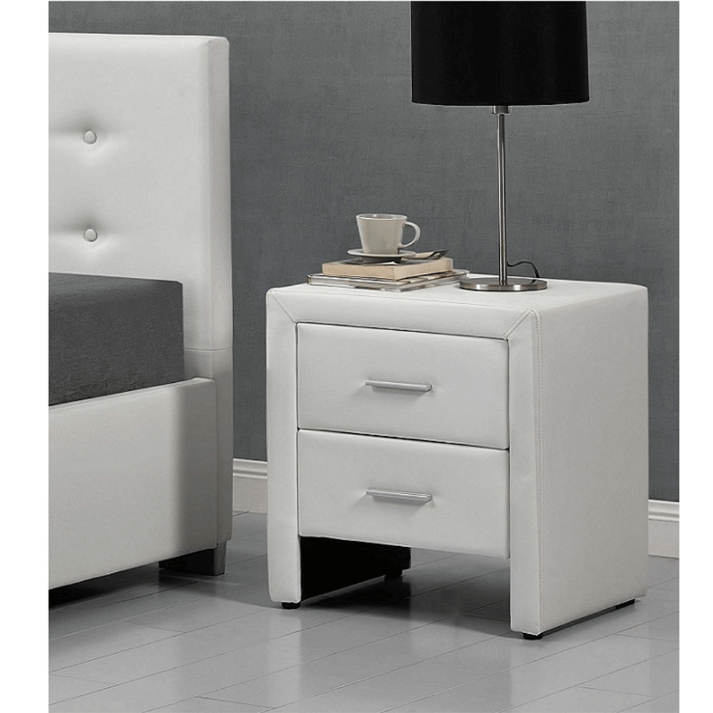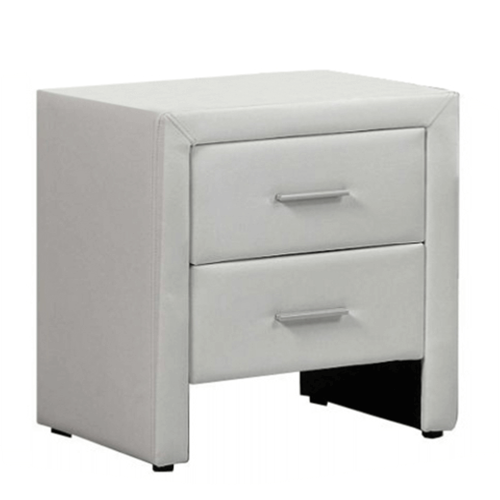 Éjjeliszekrény CASTEL, fehér textilbőr kivitelben