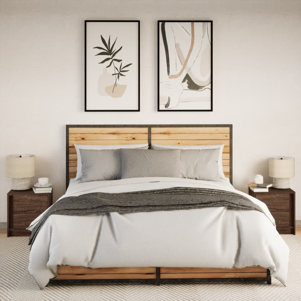 vidaXL 2 db barna tölgyszínű szerelt fa éjjeliszekrény LED-fényekkel