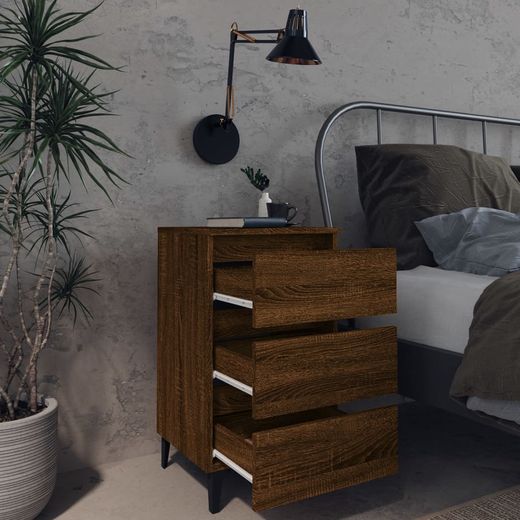 Ez a négy fémlábbal ellátott éjjeliszekrény stabil és masszív. Ezenkívül a éjjeliszekrény három fiókkal lett ellátva, amelyek bőséges helyet kínálnak a dolgok rendezett, kézközelben történő elhelyezésére. Nedves ruhával könnyen tisztítható.