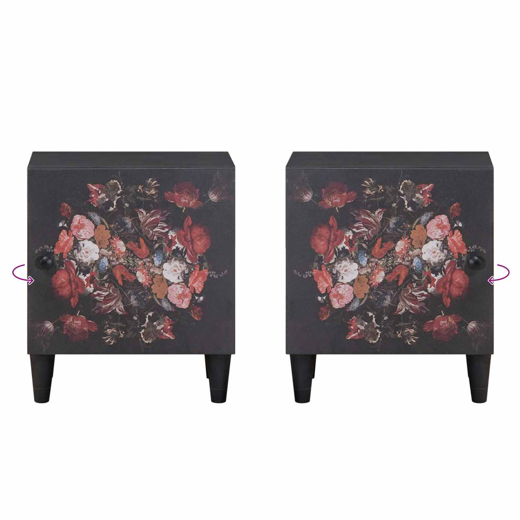 vidaXL Éjjeli szekrény ajtóval 2 pcs Fekete 40 x 33 x 46 cm