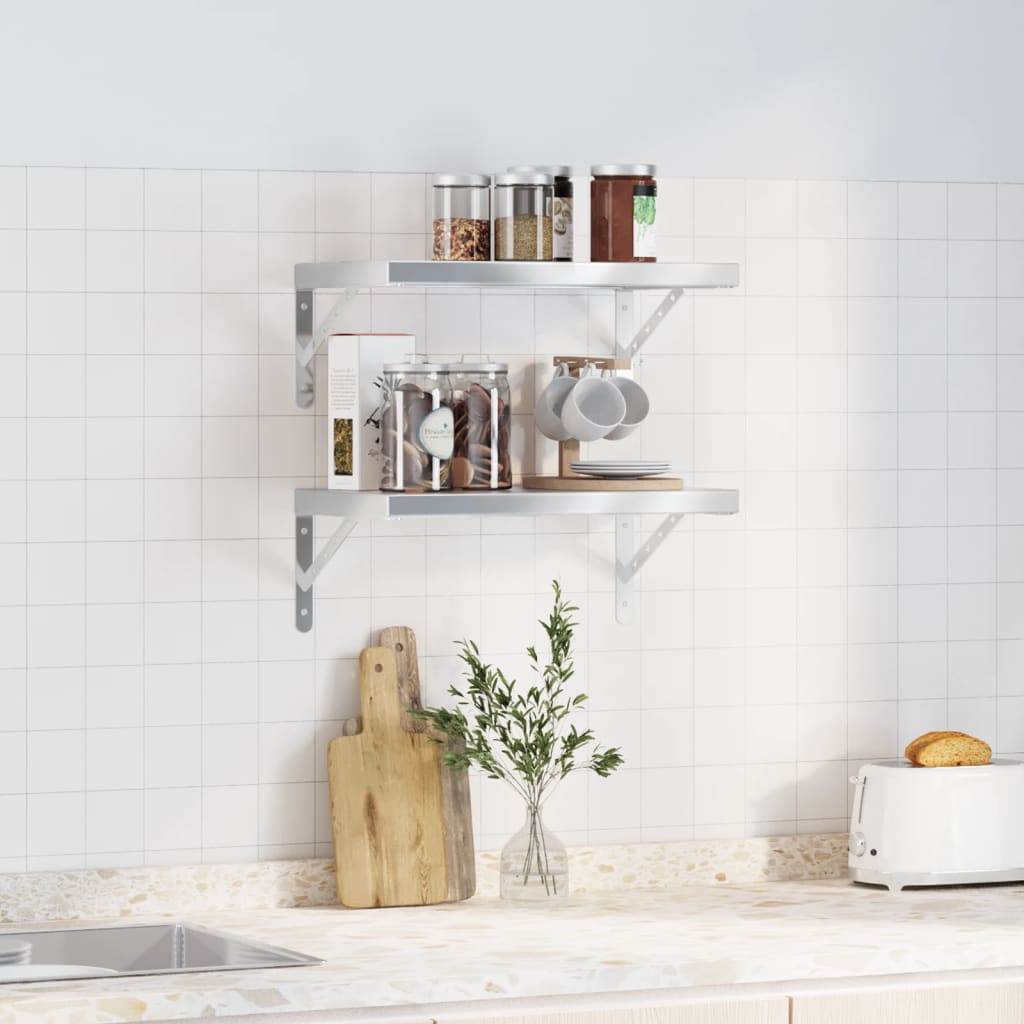 vidaXL 2 db ezüstszínű rozsdamentes acél fali polc 50 x 30 x 3 cm