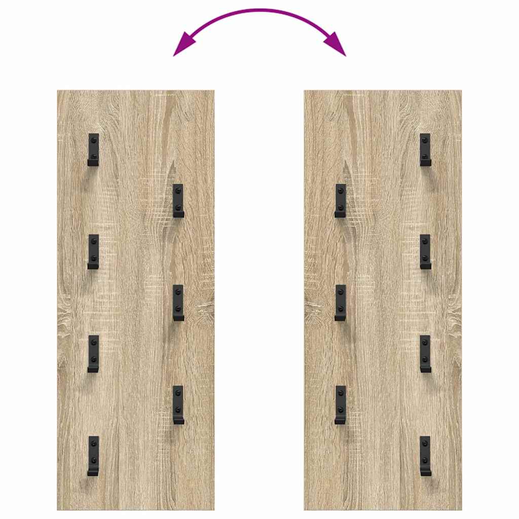 Engineered Wood: Kiváló minőségű faburkolatból készült, ez a kabáttartó állandó és tartós. A matt felülete divatos és modern. Elég erős a napi használathoz, így megbízható választás az otthonodba. Integrated Hooks: Hasznos akasztósorral van ellátva, tökéletes kabátok, kalapok és táskák akasztására. Minden akasztó maximum 10 kg-ot bír, szóval biztonságosan tárolhatod. Easy-to-Clean: Egy gyors törlés nedves ruhával, és máris tiszta. Nagyon jó sűrűn használt háztartásokhoz, biztosítva, hogy kis erőfeszítéssel is jól nézzen ki. Wall-Mounted Design: Rengeteg helyet spórol, miközben feldobja a szoba stílusát. A falra rögzítés biztonságosan tartja, okos megoldás szűk helyekre. Practical Care Instructions: Tartsd meg a tartó állapotát, ha rendszeresen nedves ruhával áttörlöd. Könnyen karbantartható, így sokáig a kedvenced maradhat az otthonodban.- Szín: Sonoma tölgy