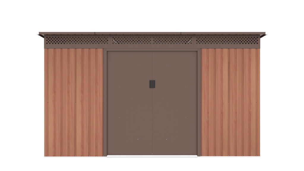 A GRAH 915 kerti tároló kétszárnyas ajtóval van ellátva 138 cm szélességgel. A bejárat így igazán kényelmes akkor is, ha nagyobb tárgyat visz be vagy ki.