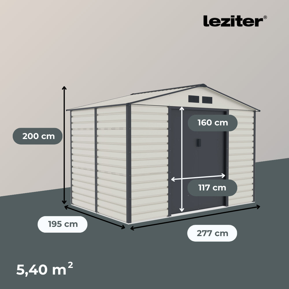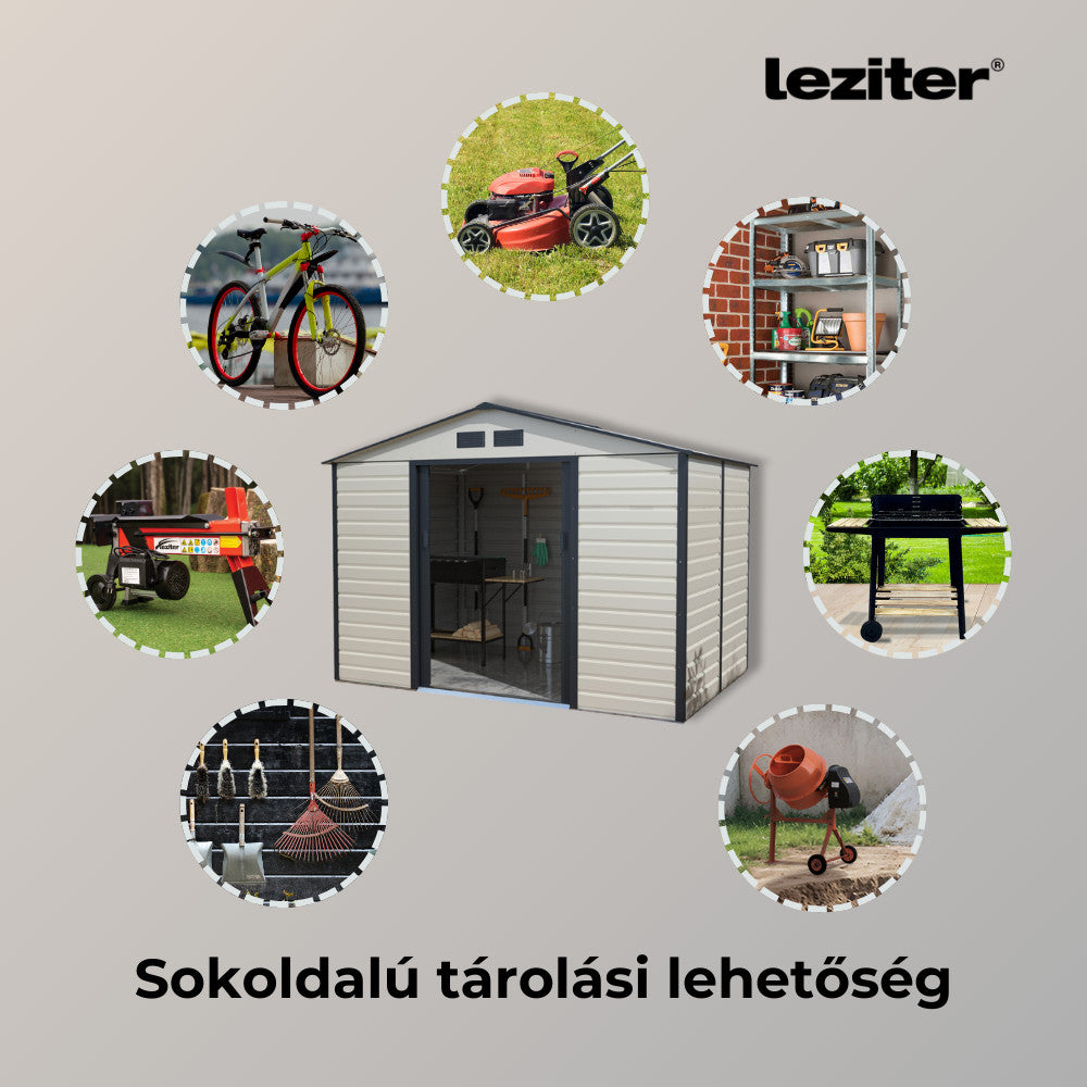 - Méret: 277 x 195 x 200 cm – A kompakt méretű tároló ház ideális választás mindazok számára, akik kisebb kerti eszközöket és gépeket szeretnének egy helyen tárolni.