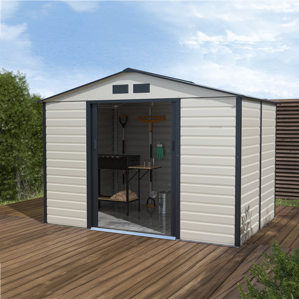 - Robusztus kialakítás: Az erős szerkezet és a kiváló minőségű, tartós anyagok hosszú élettartamot biztosítanak, ellenállva az időjárás viszontagságainak. Az Kansas szerszámtároló ház 0,25 mm vastagságú, tűzihorganyzott acélpanelekből és 0,5-0,8 mm-es, tűzihorganyzott horganyzott acélkeretből készült, amelyek garantálják a tartósságot. A fémmerevítésű faloszlopok további erőt és stabilitást adnak a szerkezetnek. Az időtálló és strapabíró kialakításnak köszönhetően ez a tároló hosszú évekig szolgál majd téged és kertedet.