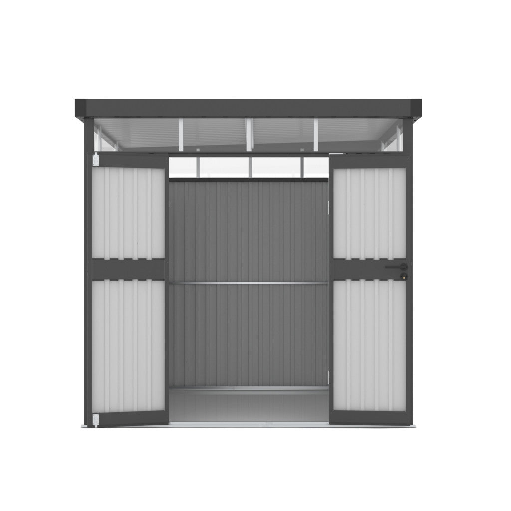 A szerszámosház kerettel ellátott ablakkal van felszerelve, amely beengedi a természetes fényt és megkönnyíti a benti munkát. A zárható szerkezet hatékonyan védi a tartalmát a portól, a nedvességtől és a rovaroktól. Az egyszerű, semleges színű kialakításnak köszönhetően a kamra zökkenőmentesen illeszkedik bármilyen kerti környezetbe. A szerszámosház nemcsak kerti felszerelések, hanem bútorok, kerékpárok és szezonális kiegészítők tárolására is tökéletes. Megvédi a felszerelést az esőtől, a hótól és a naptól, meghosszabbítva élettartamát. Praktikus és esztétikus kiegészítője bármely kertnek.